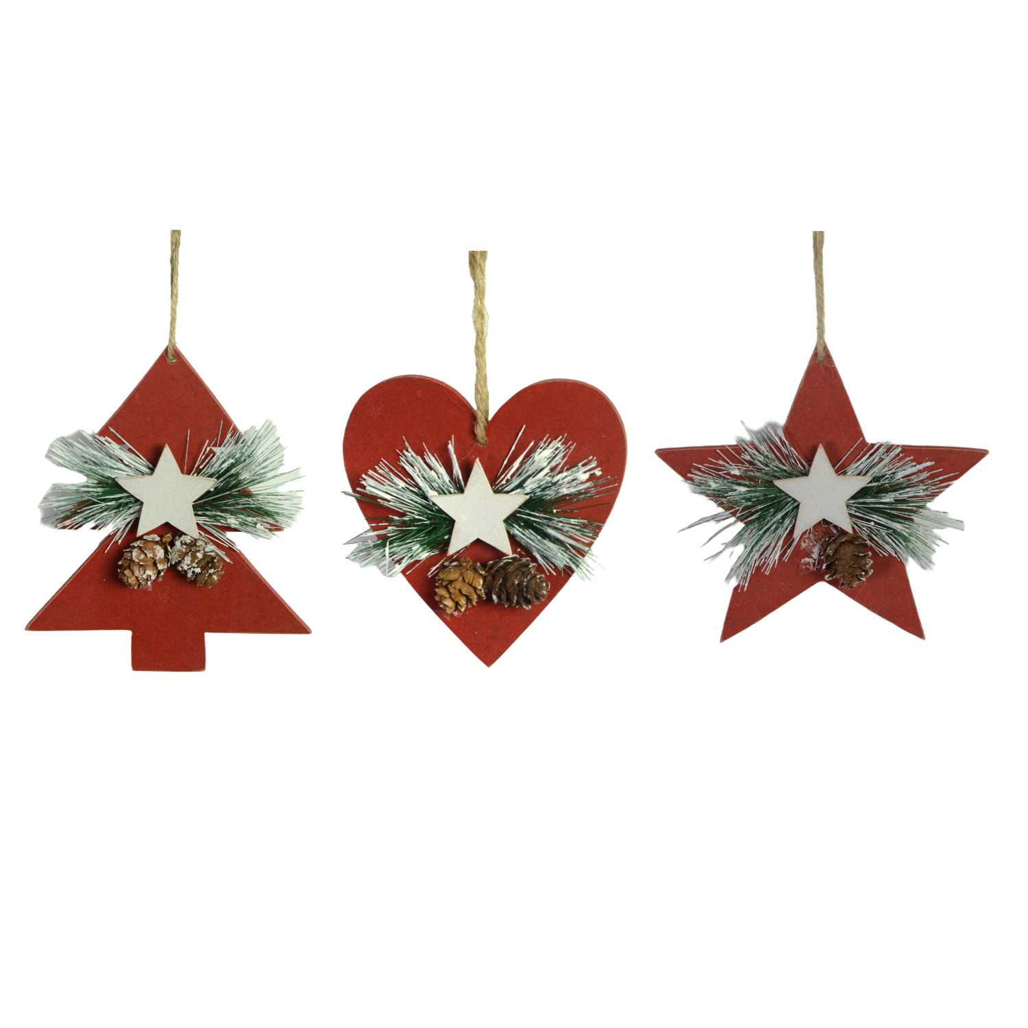 Addobbo legno rosso 3 assortiti cm11x3x11