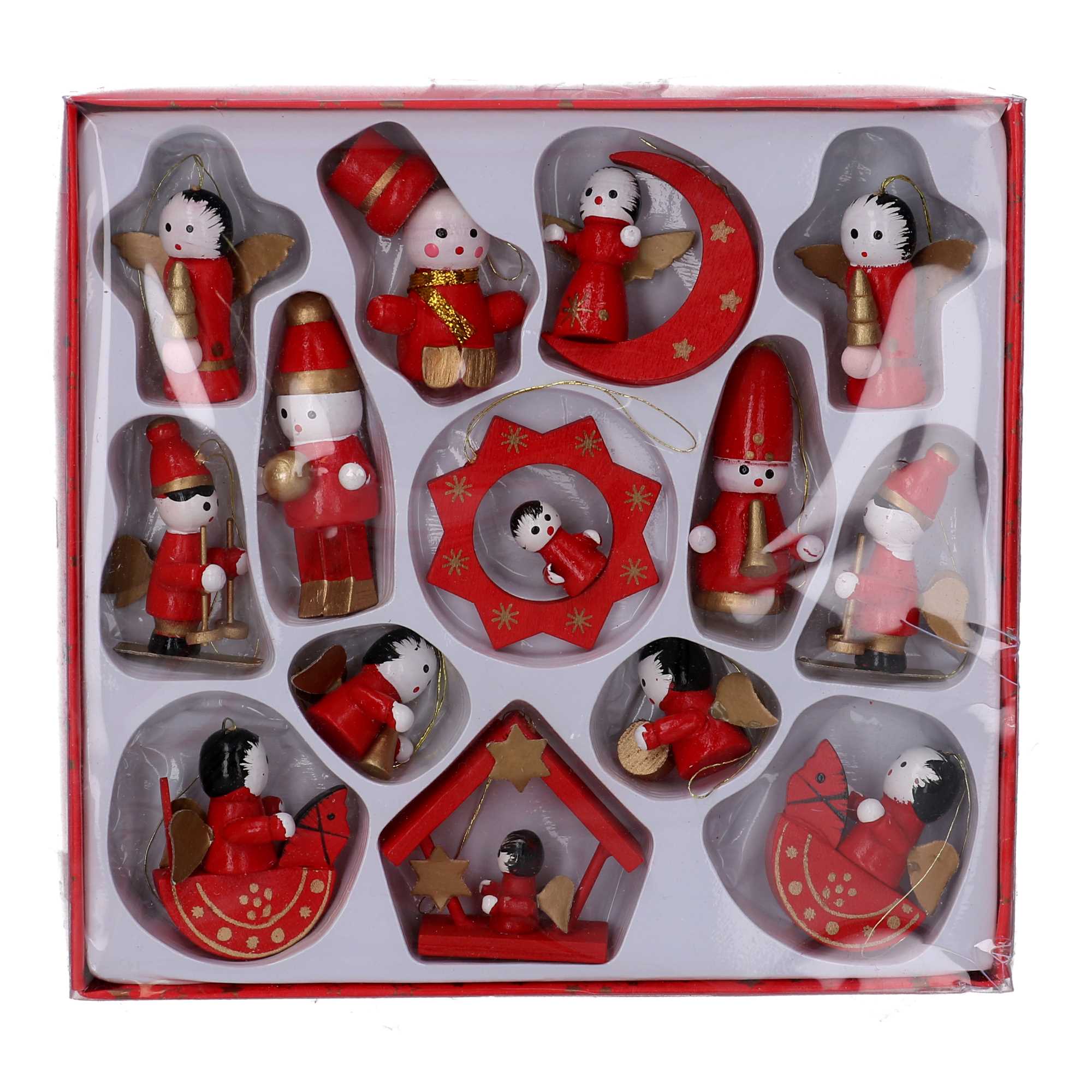 Addobbo per albero legno confezione 14pz rosso e oro cm20,5×19,5h3