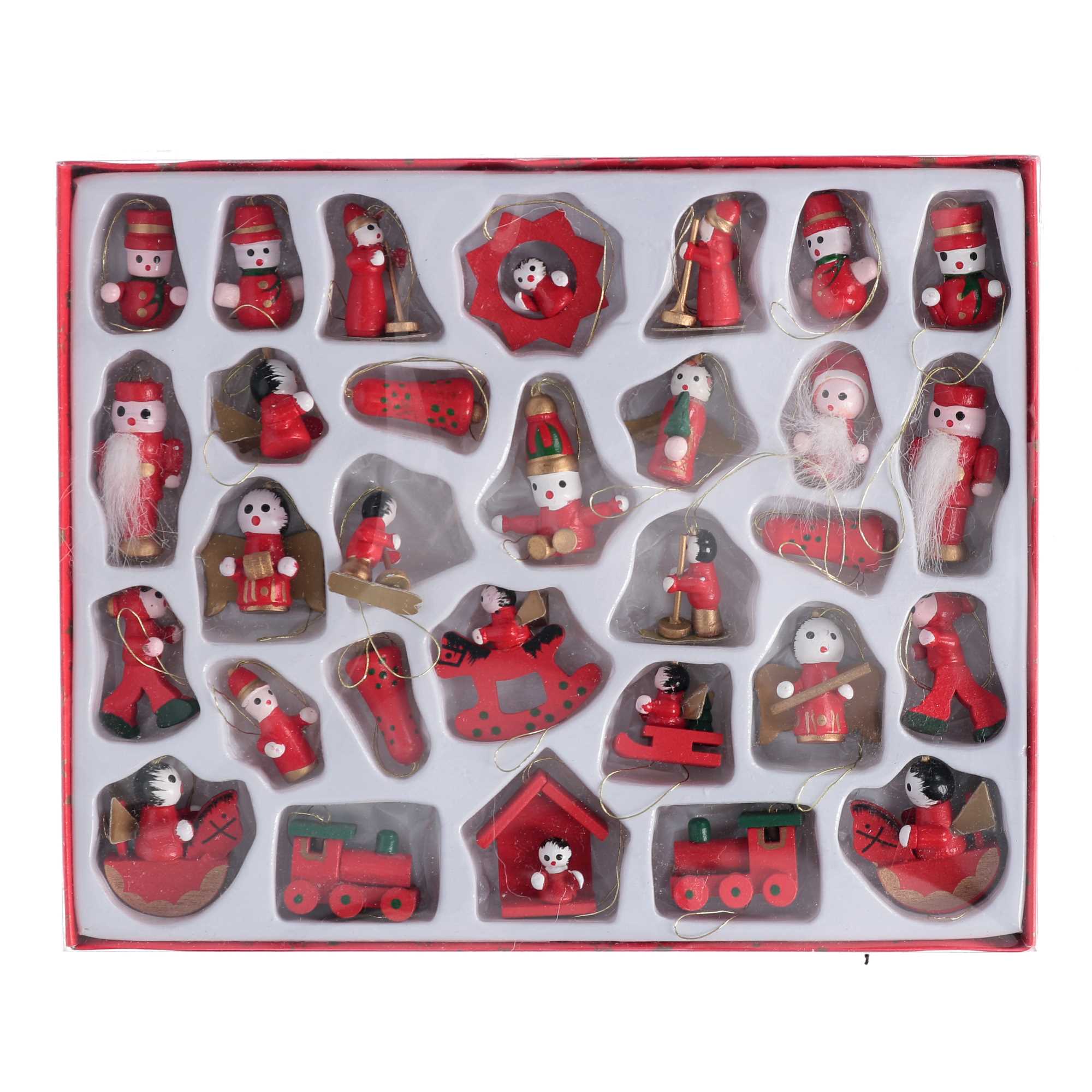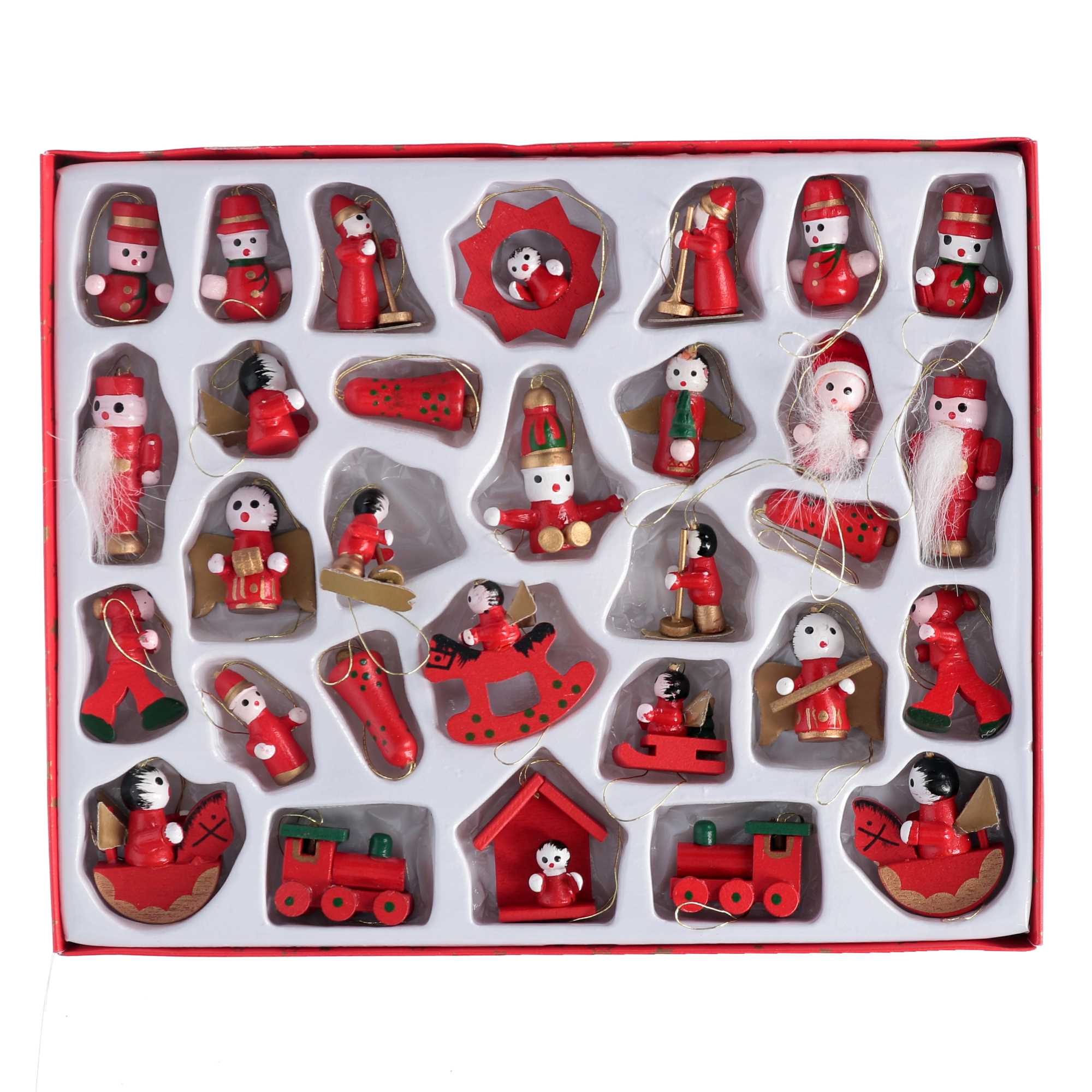 Addobbo per albero legno confezione 30pz rosso e oro cm22,5x18h2