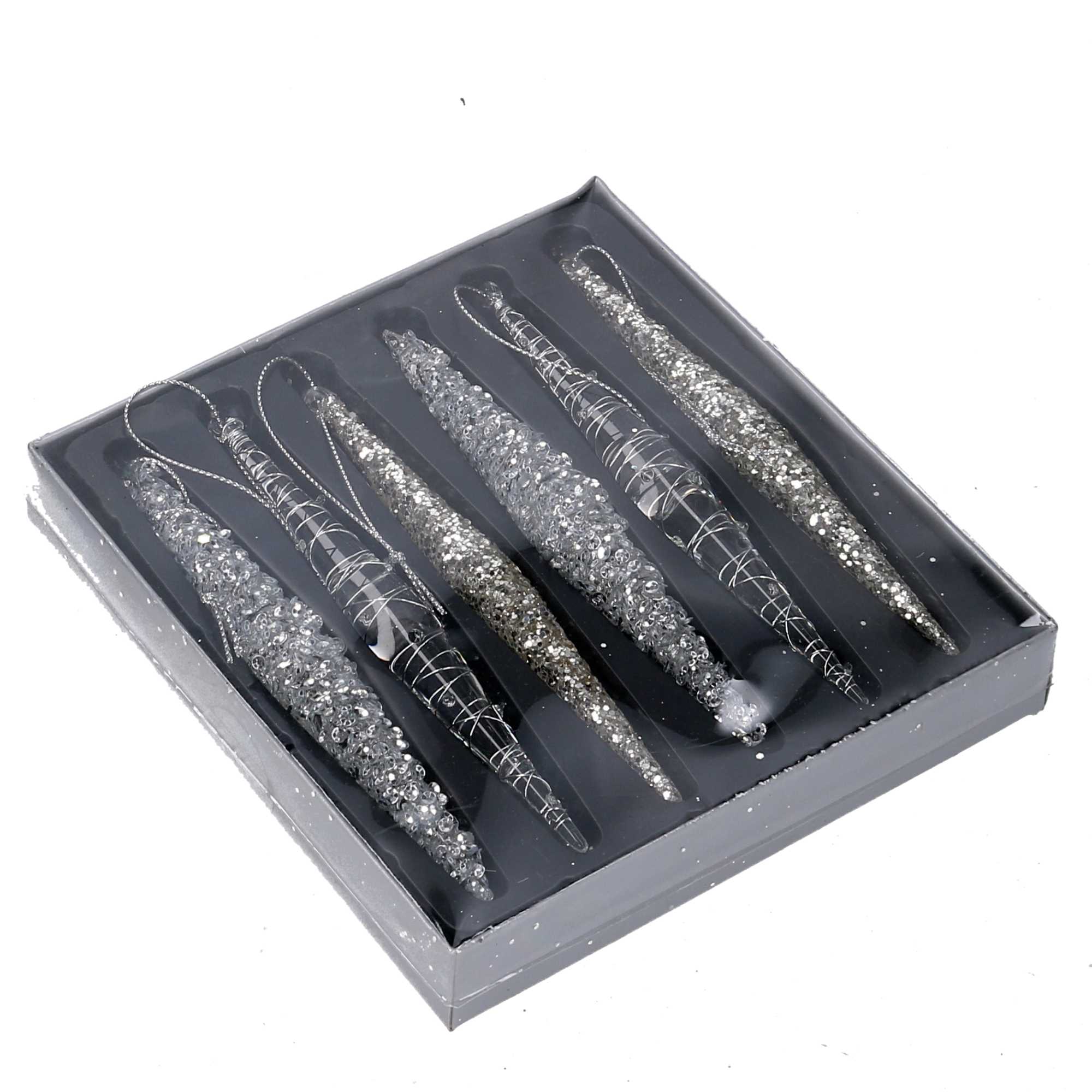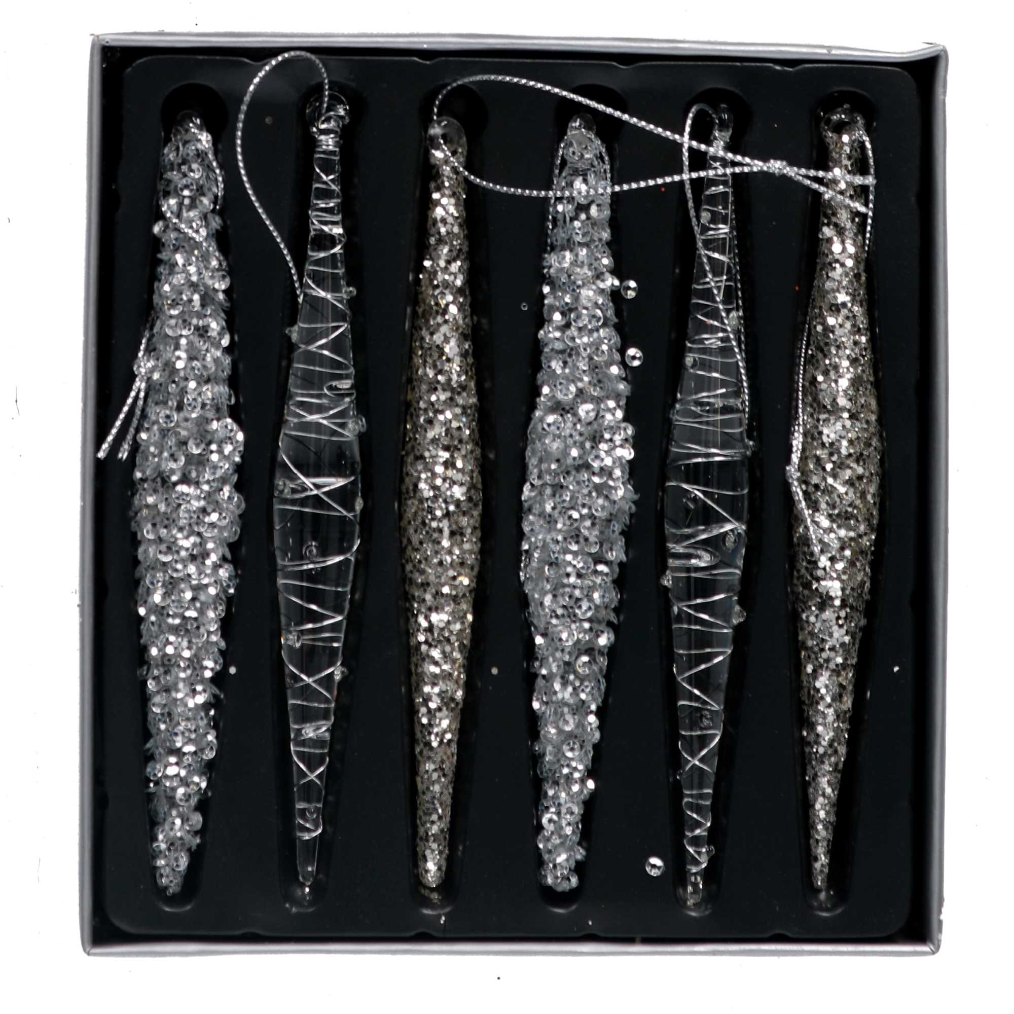Addobbo per albero vetro ghiacciolo conf. 6pz argento cm2x2h16