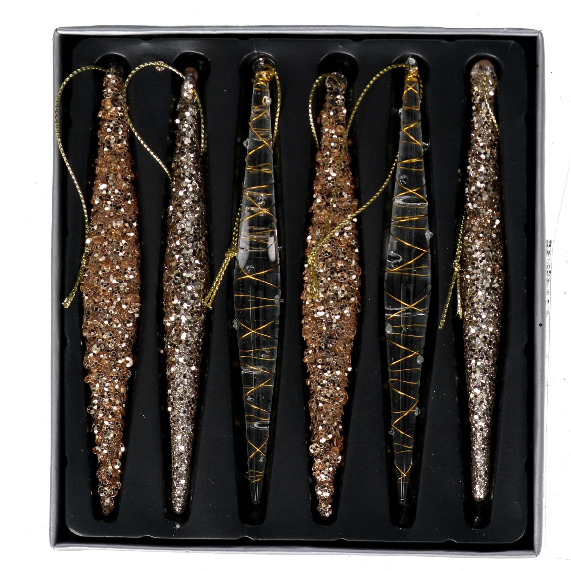 Addobbo per albero vetro ghiacciolo conf. 6pz oro cm2x2h16