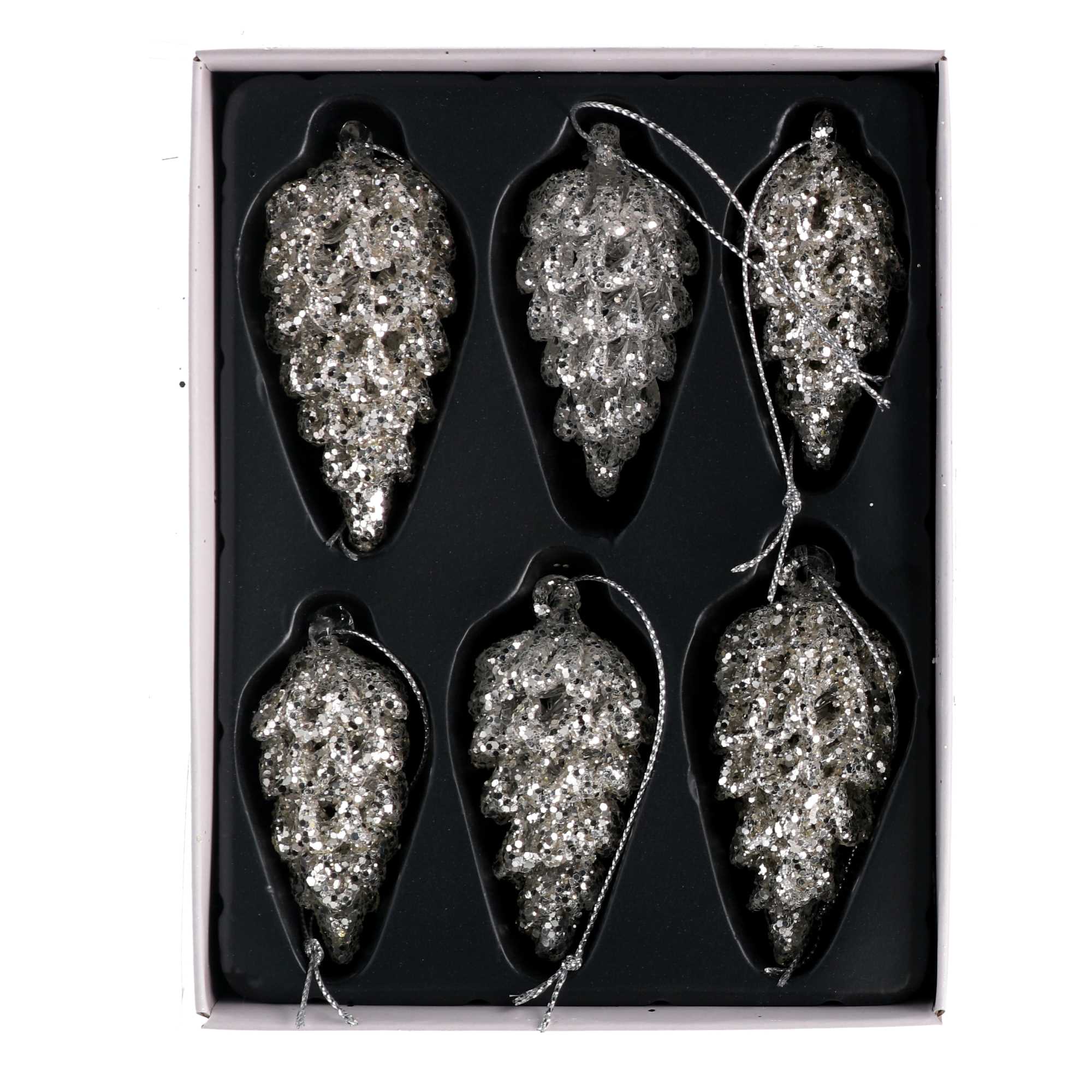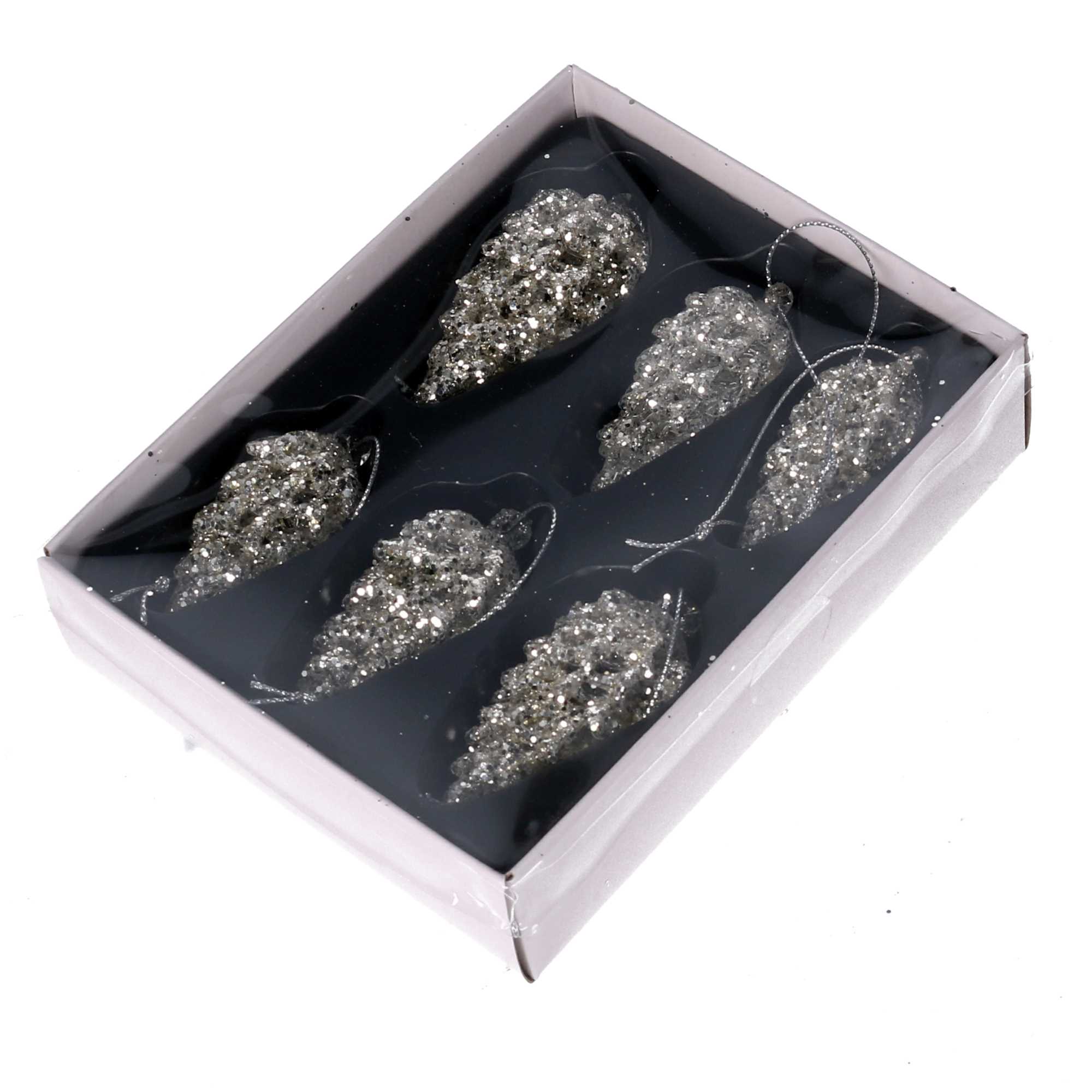 Addobbo per albero vetro pigna conf. 6pz argento cm15,7×12,3h4