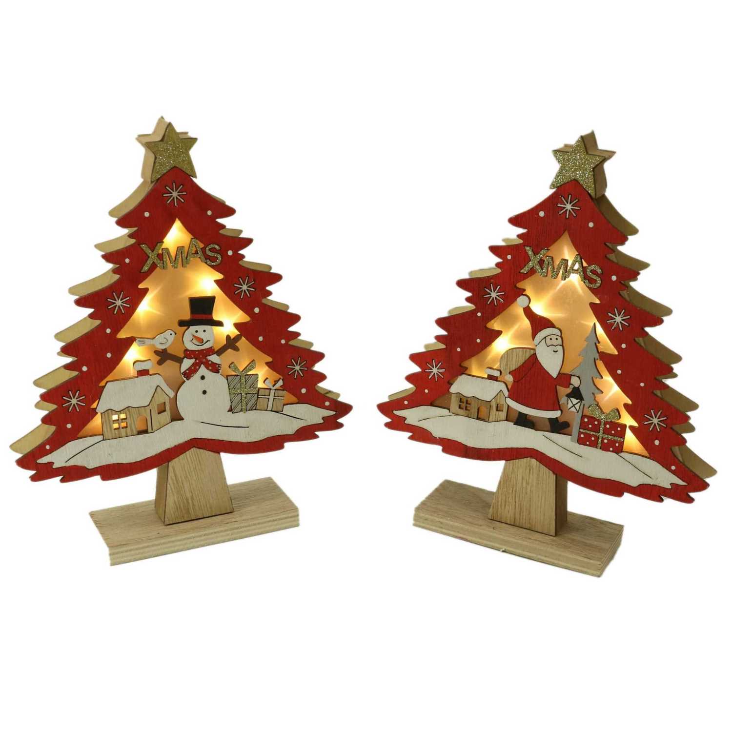 Albero legno led rosso 2 assortiti cm14x5h18