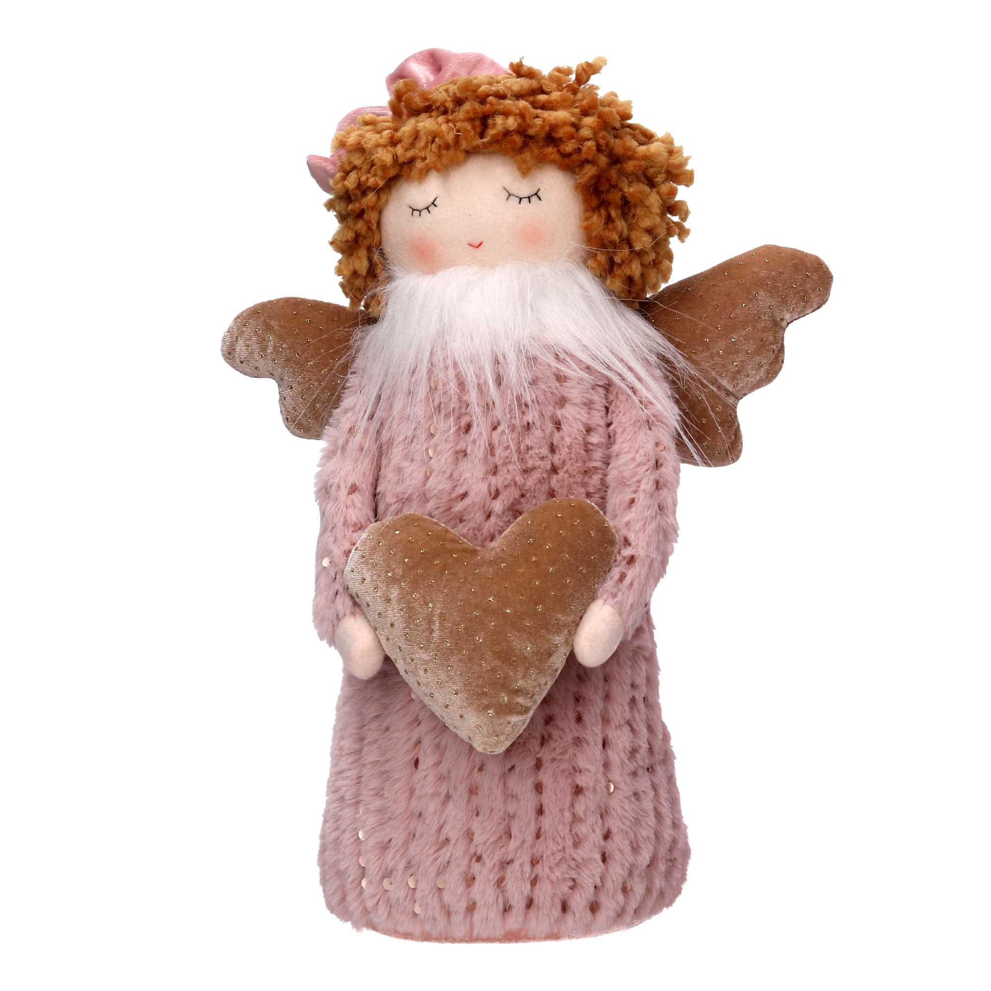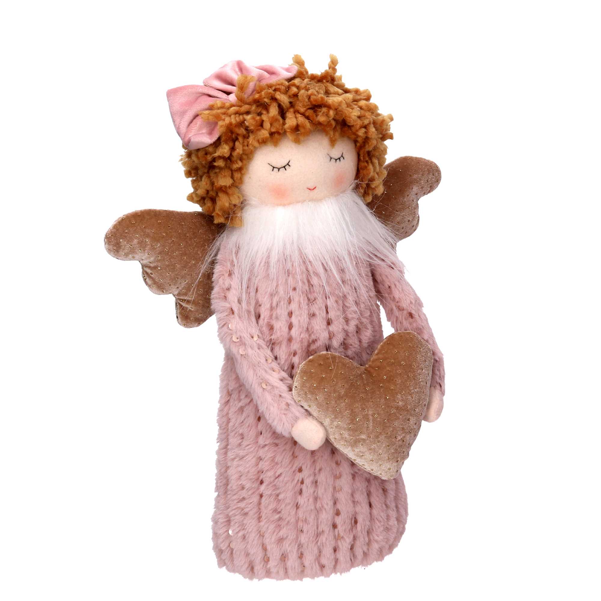 Angelo tessuto rosa con cuore cm25x14h38