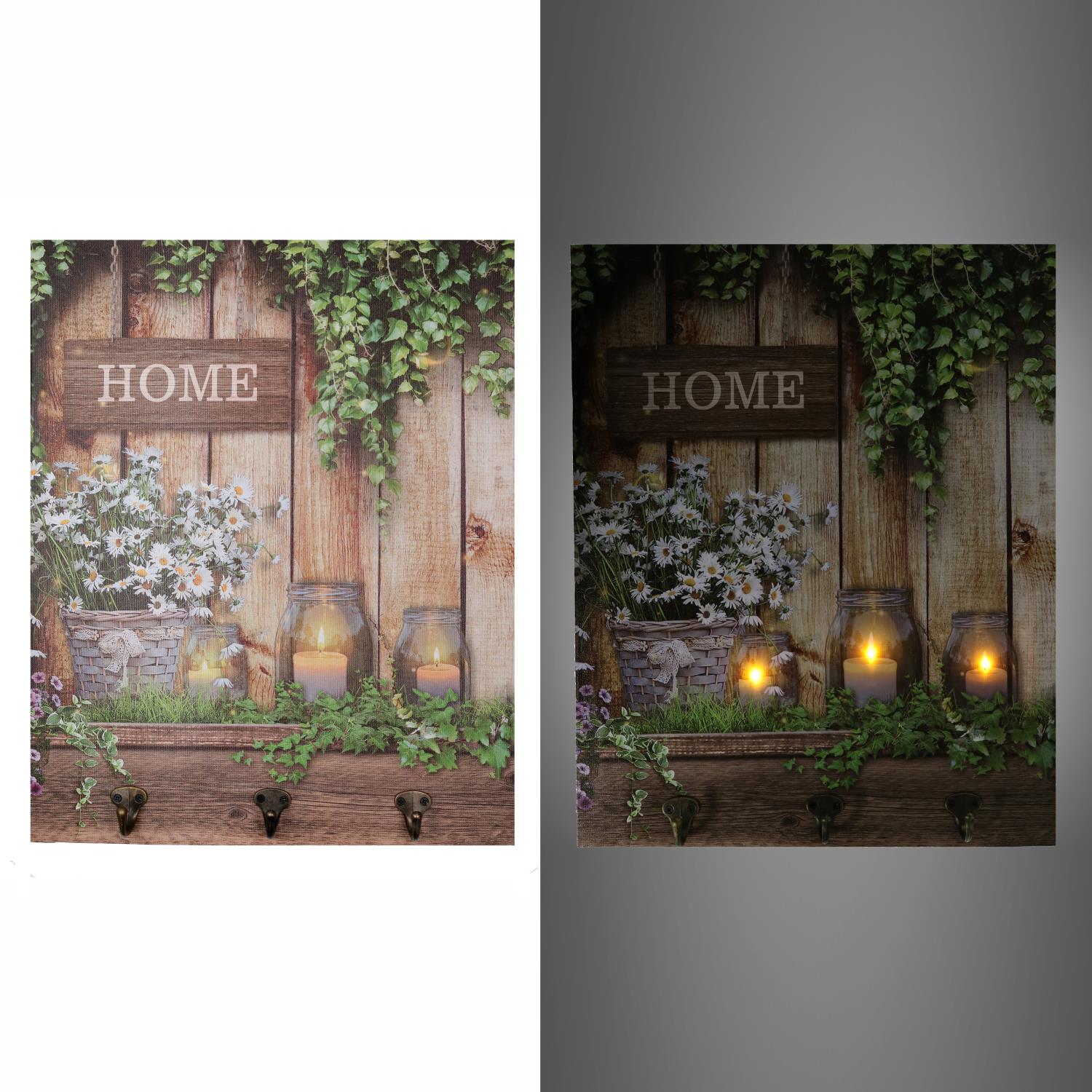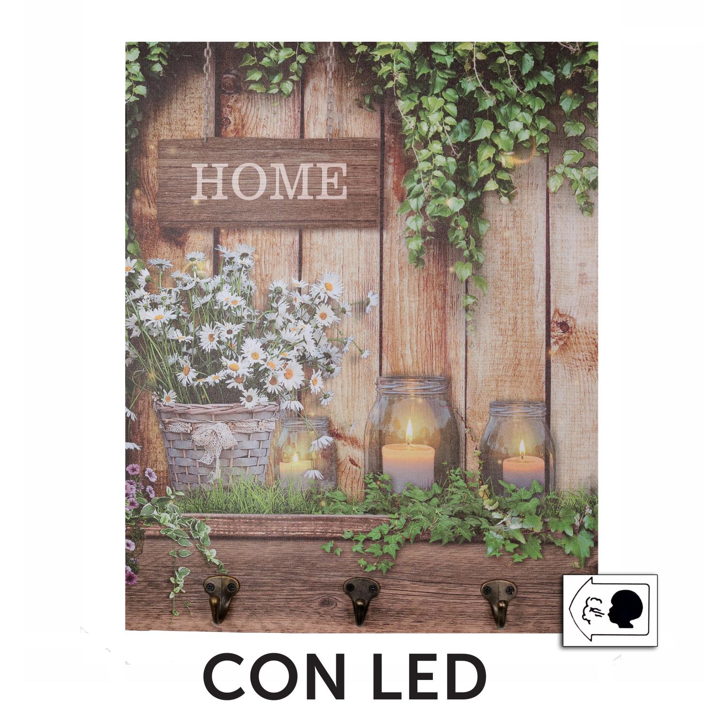 Appendino legno 3 posti con led fiori cm40x50x1,8