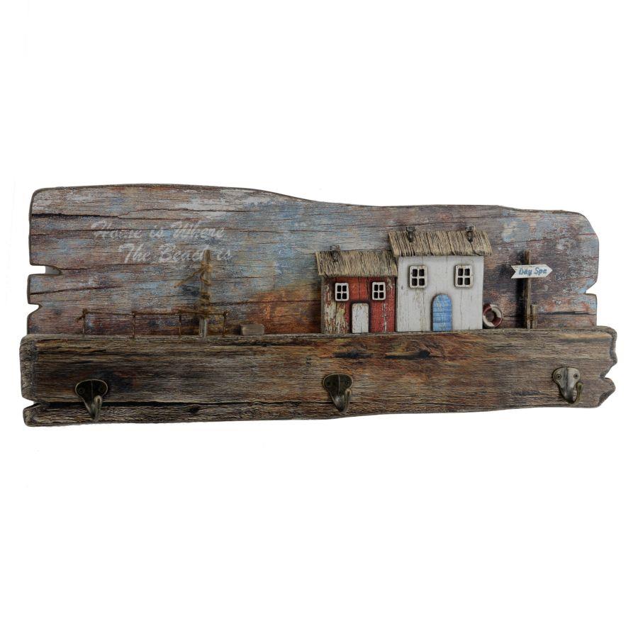 Appendino mare legno 3 posti casette cm30x23x7