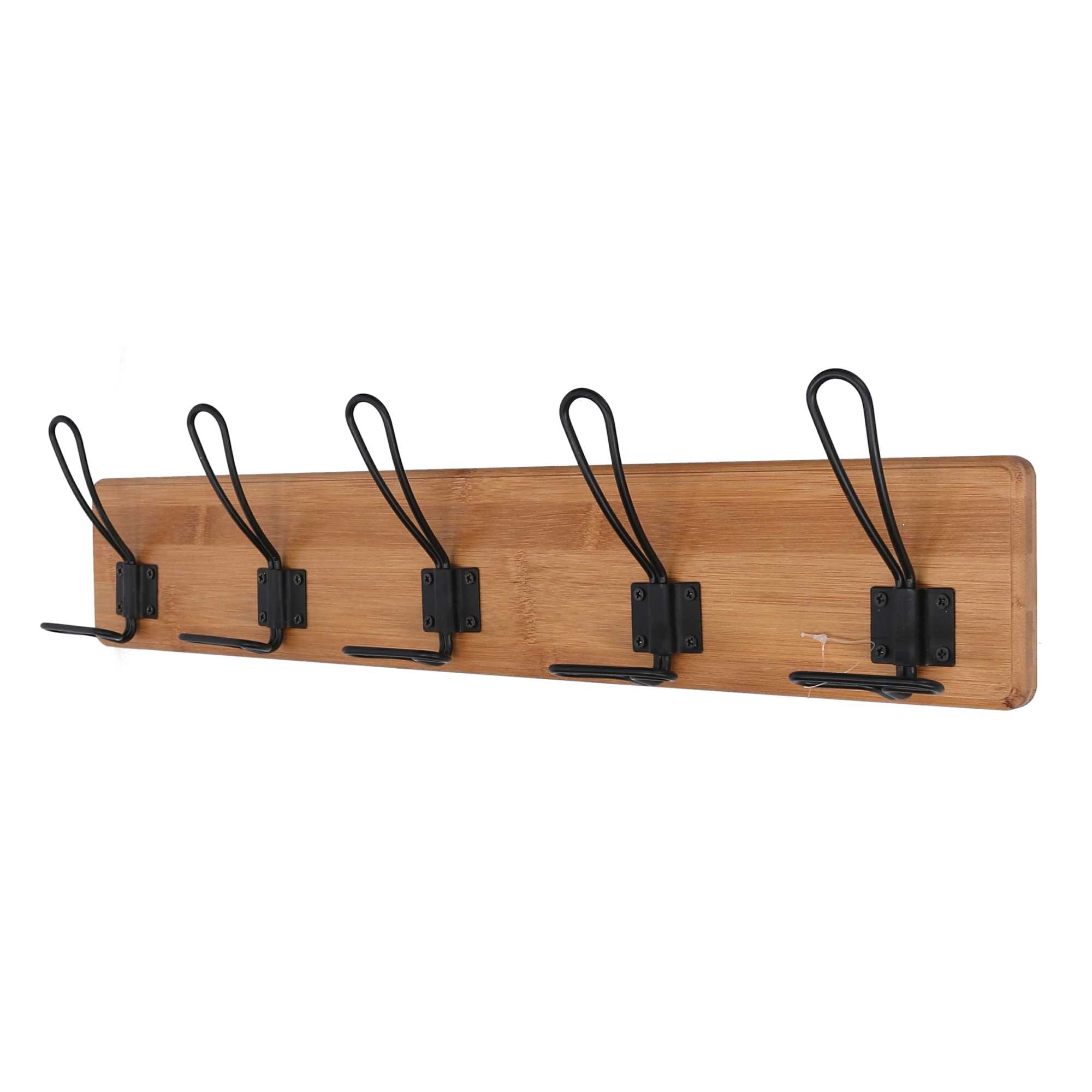 Attaccapanni legno e metallo da parete 5 posti naturale cm60x7x13,5