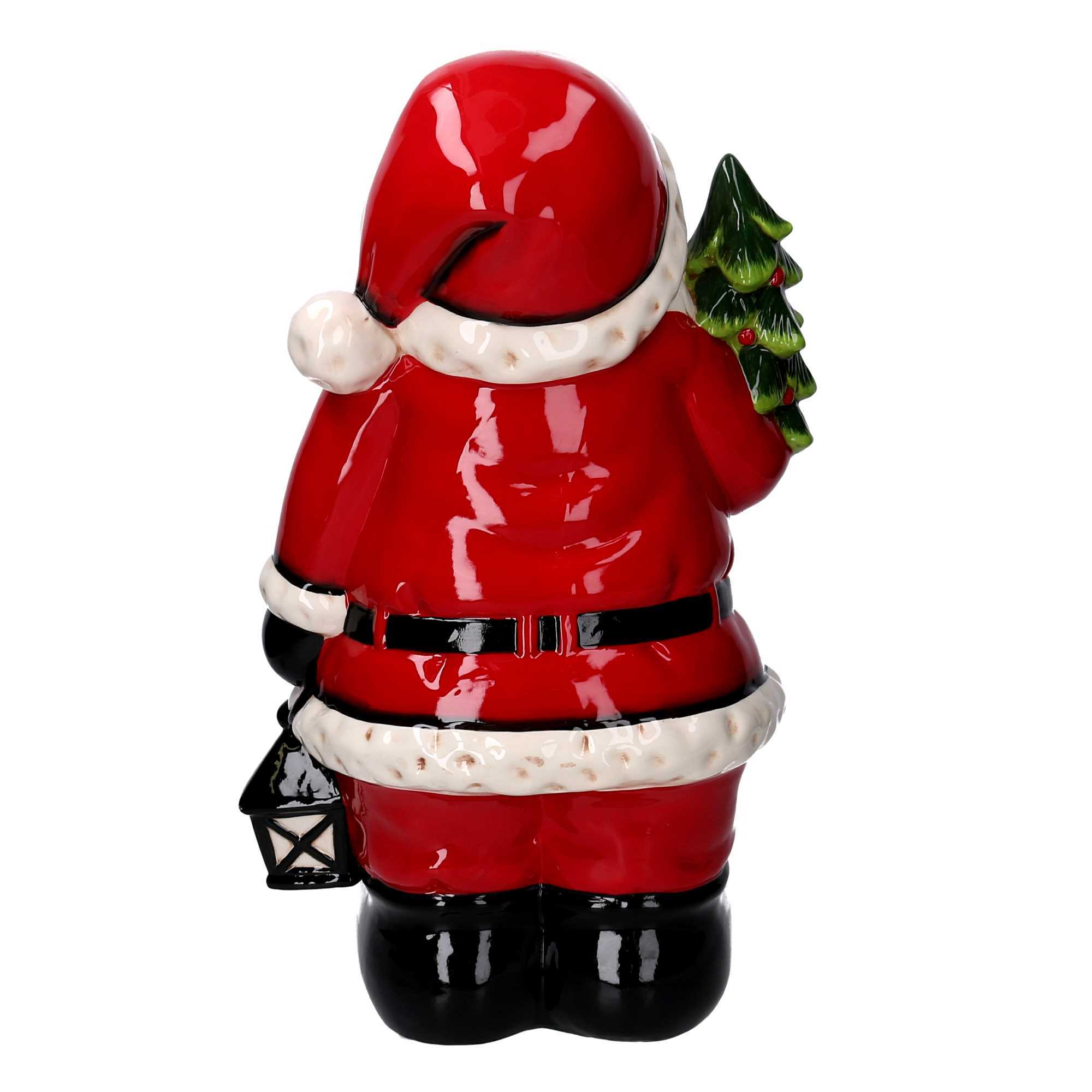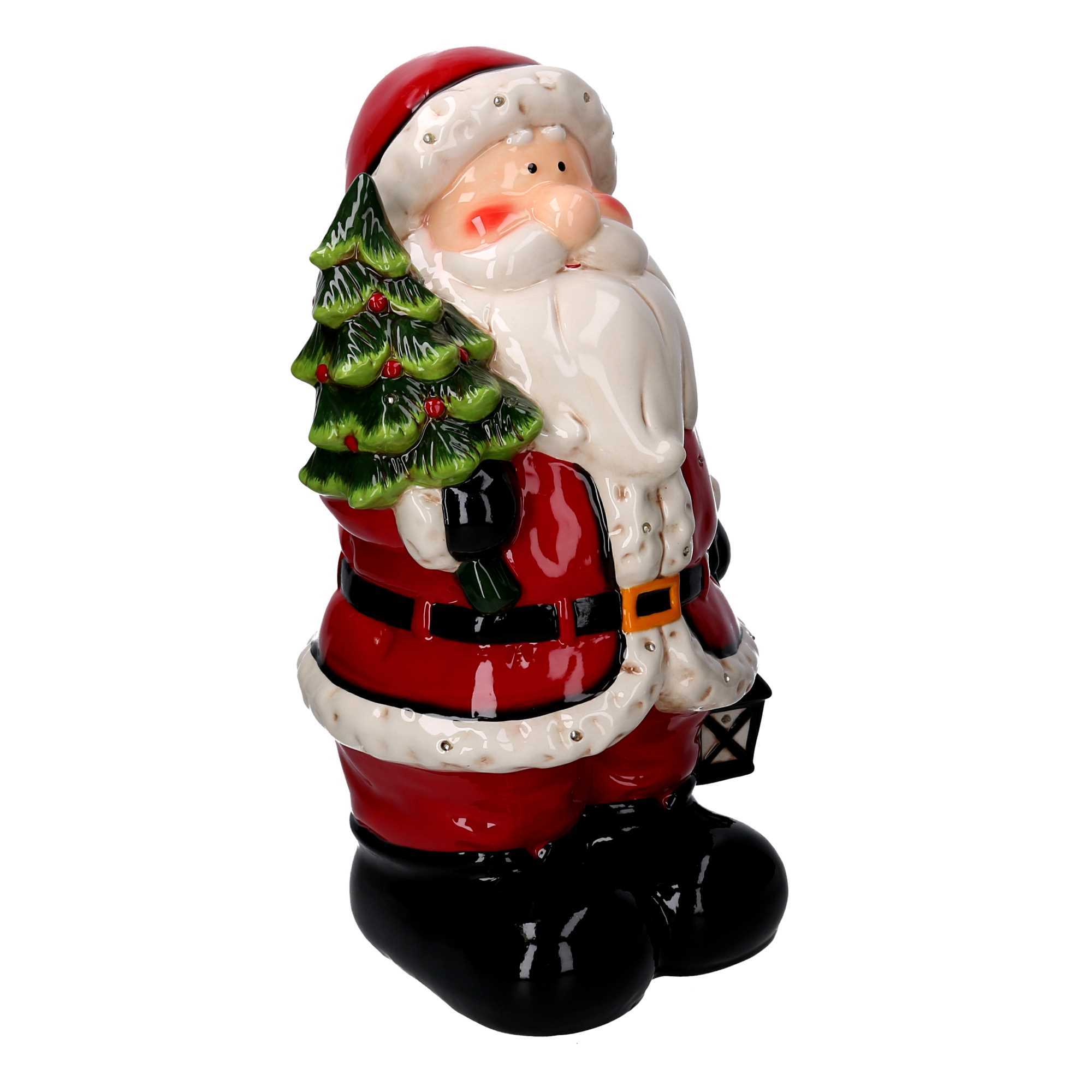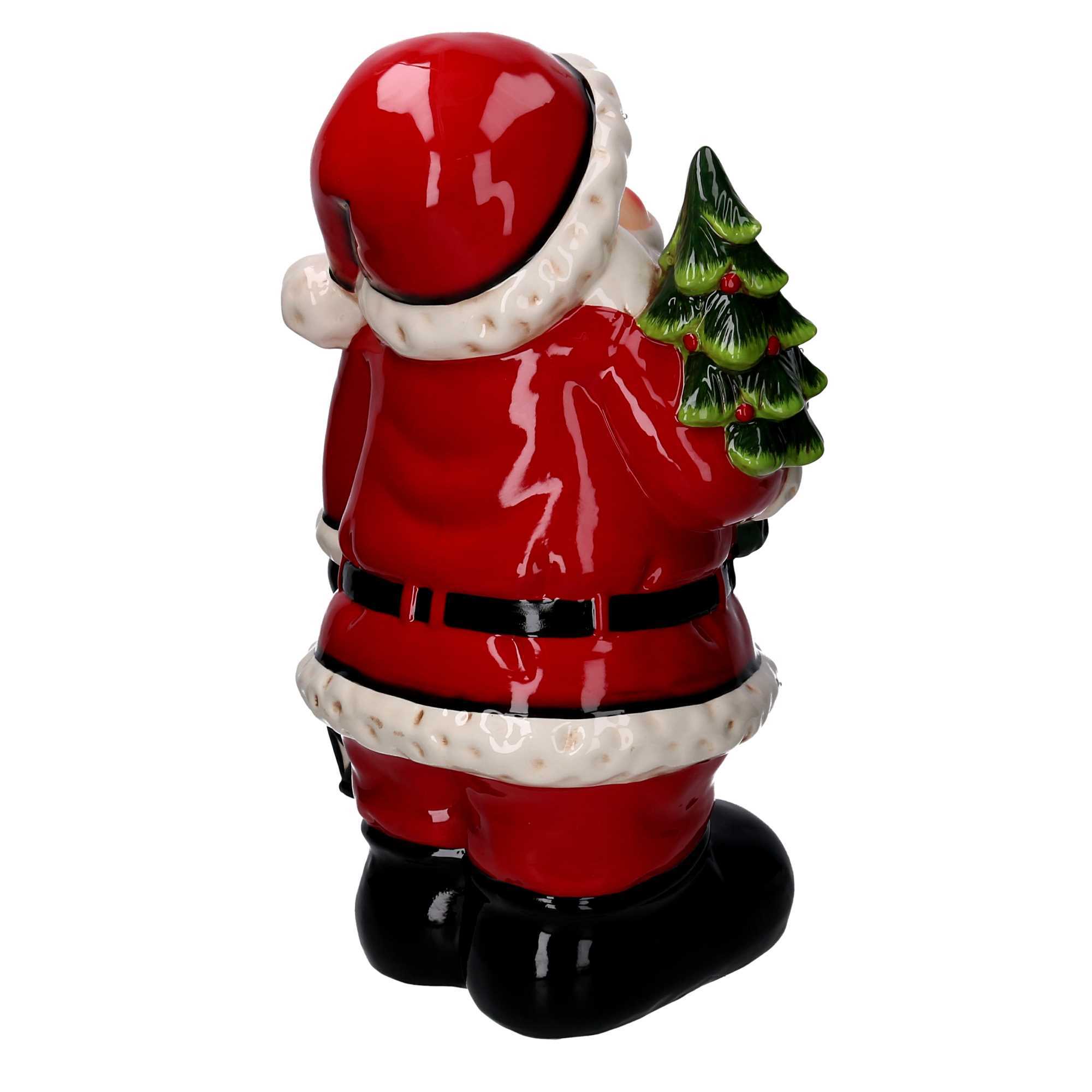 Babbo Natale Ceramica Rosso con Albero, LED e Musican