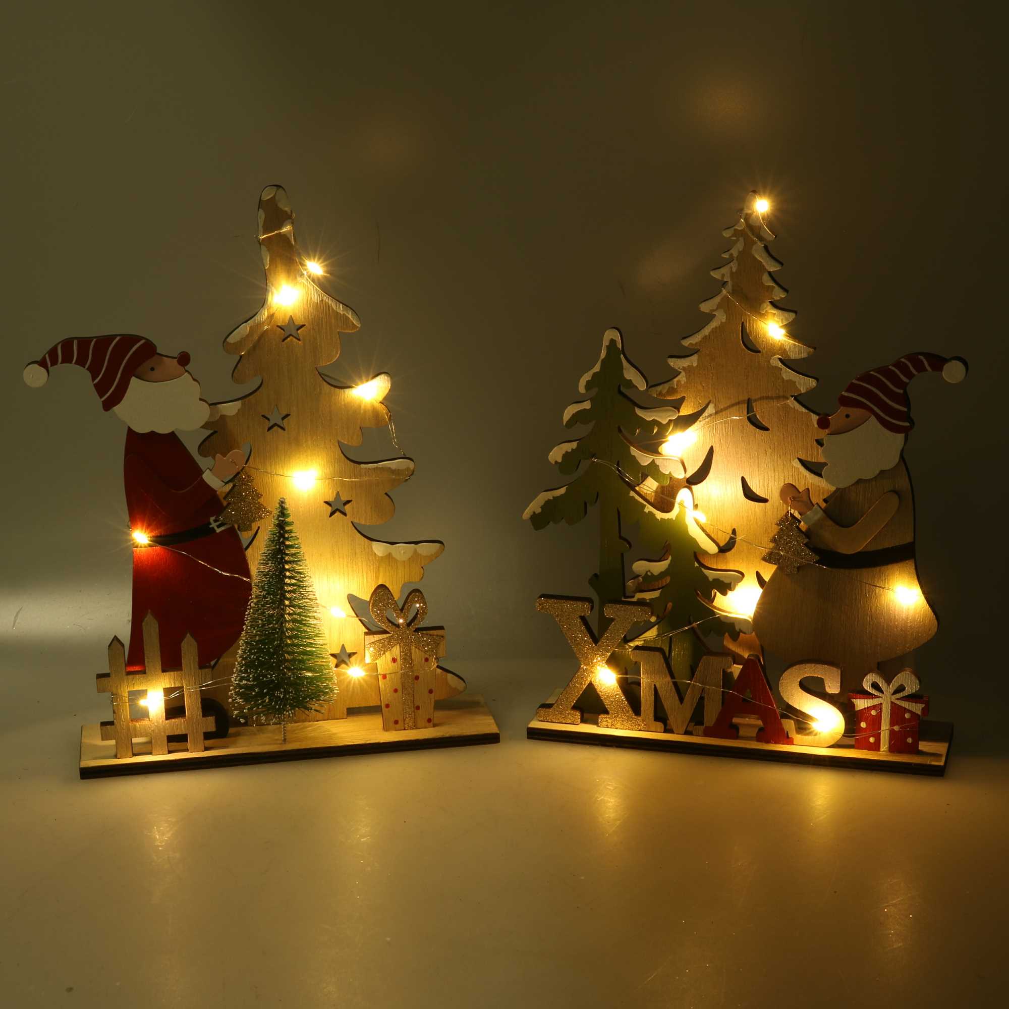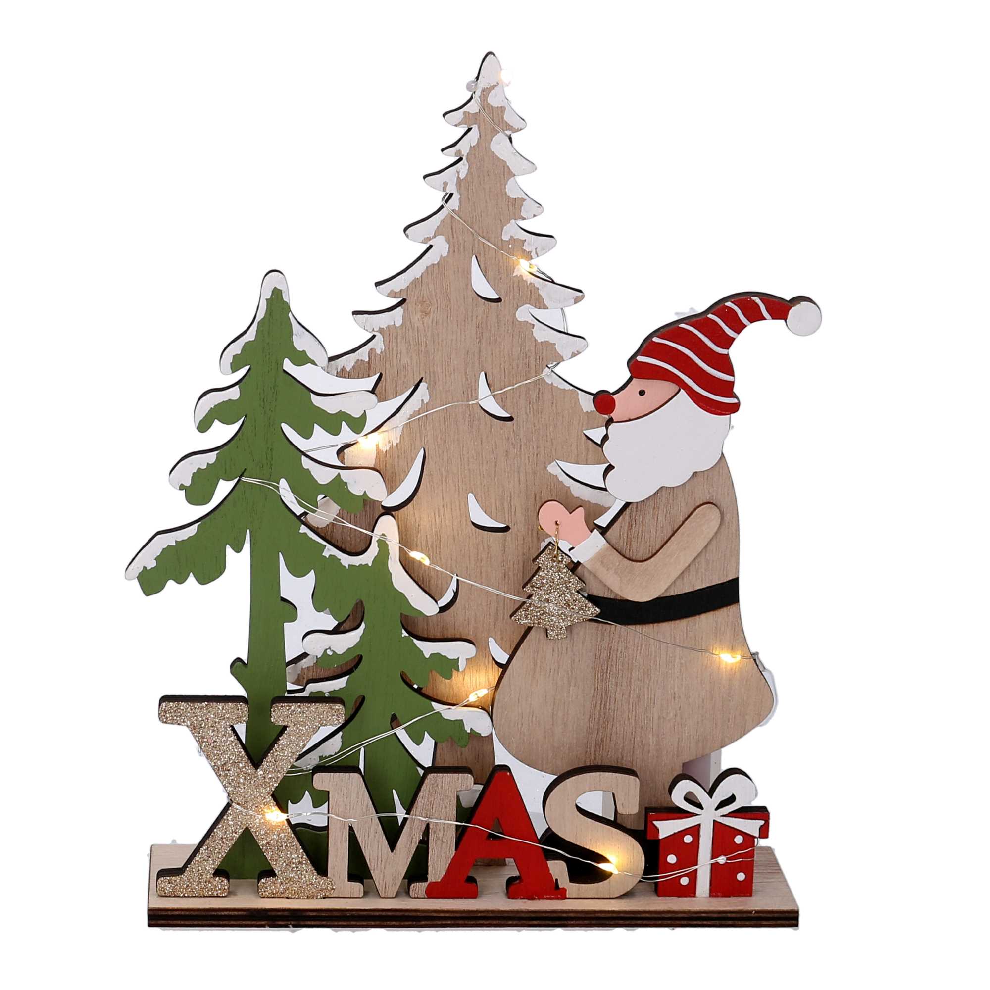 Babbo Natale in legno rosso con led, disponibile in 2 assortimenti. Richiede 2 batterie AAA, NON INCLUSE.