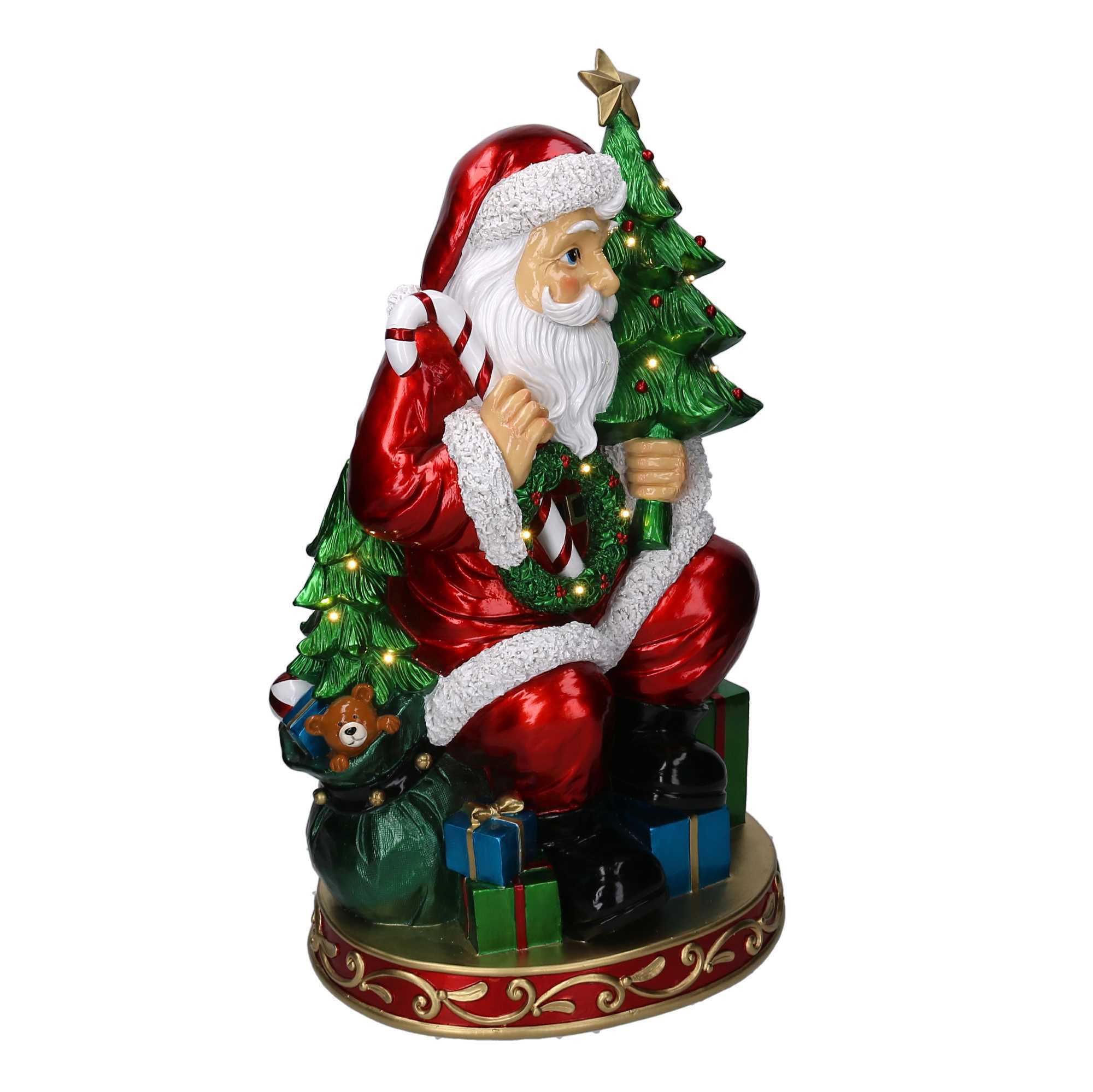Babbo natale resina rosso con regali e led cm35,5x28h60