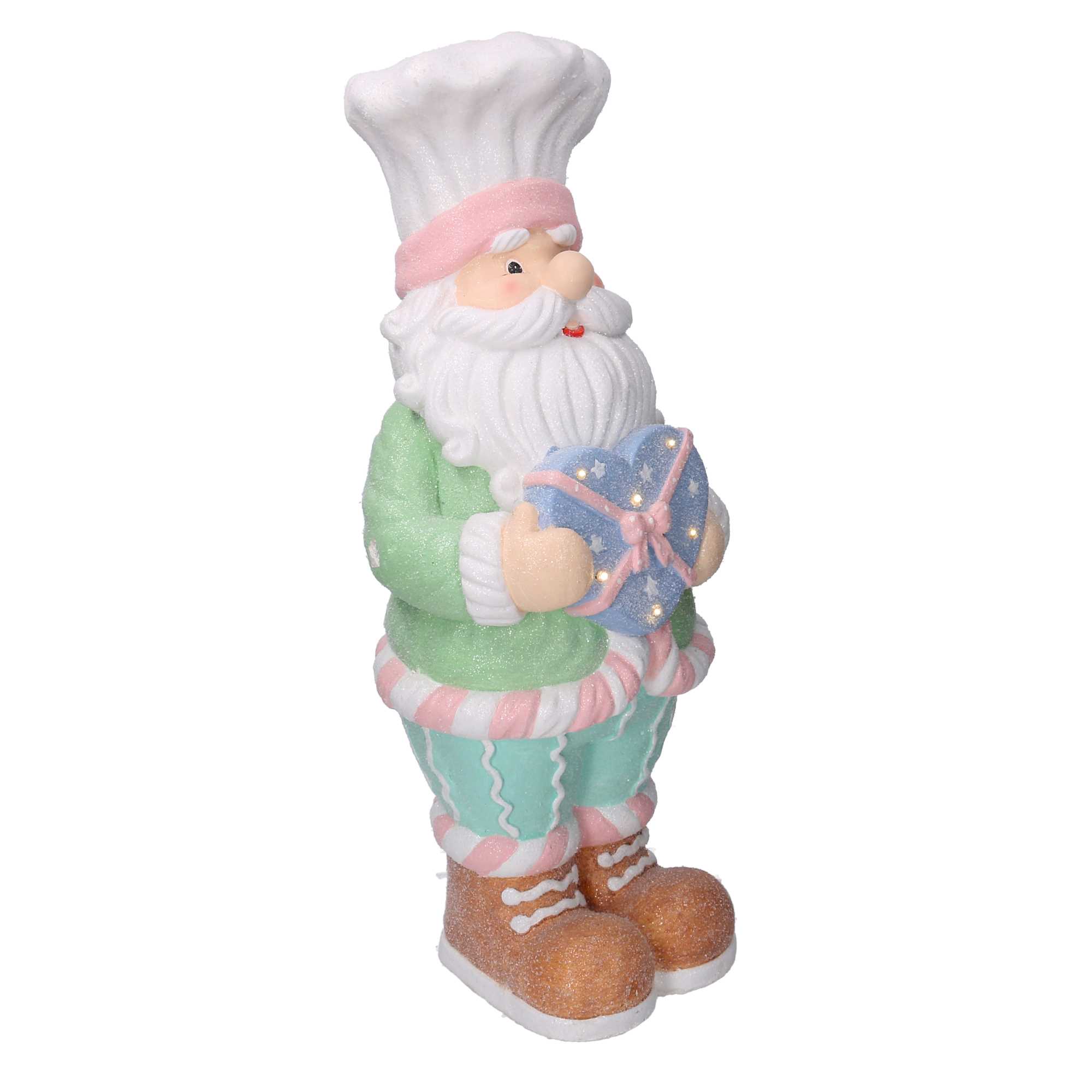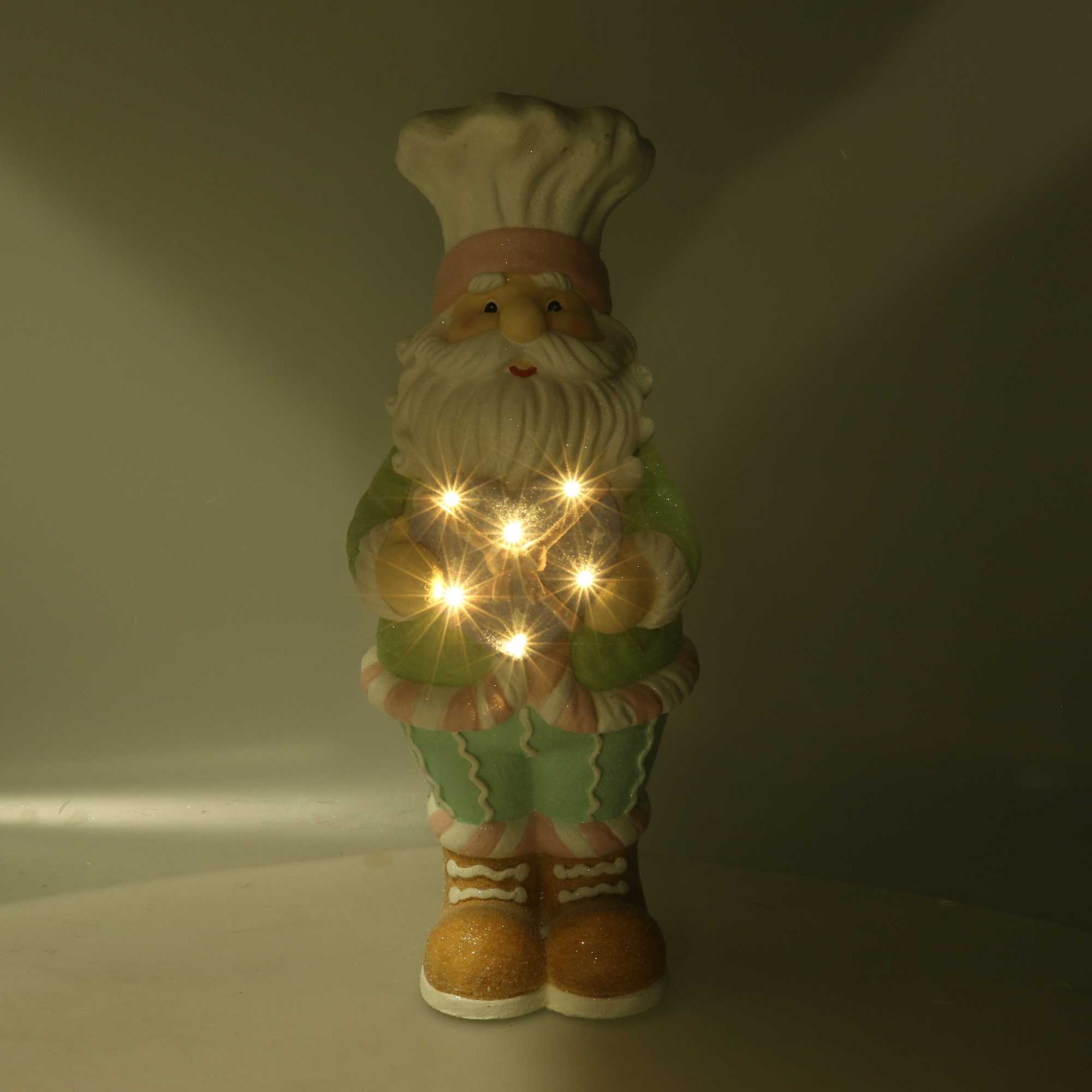 Babbo Natale Resina Verde Pastello con Cuore e LED
