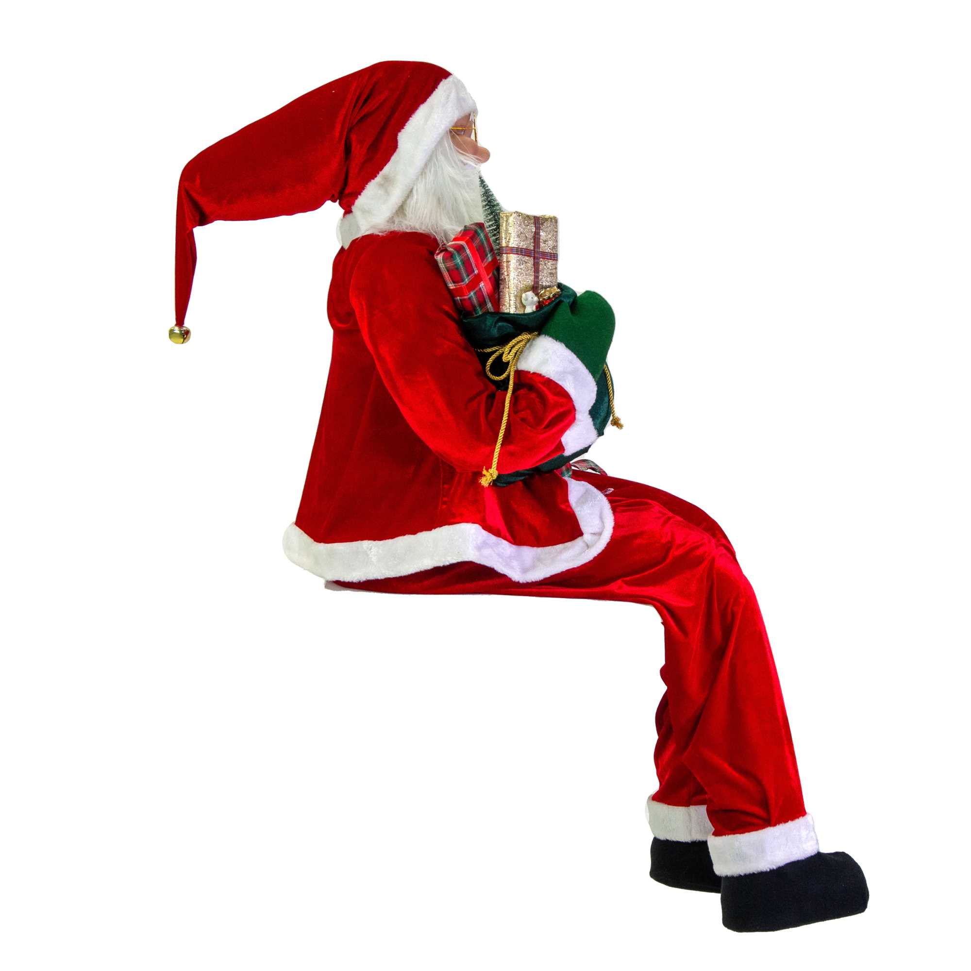Babbo Natale tessuto rosso con bastone – Ideale per decorare la tua casa durante le festività natalizie. Realizzato in tessuto rosso di alta qualità, con bastone e seduto, alto 150 cm. Le gambe sono dotate di movimenti liberi per una maggiore versatilità nella posizione. Perfetto per creare un’atmosfera magica e festosa in ogni ambiente.