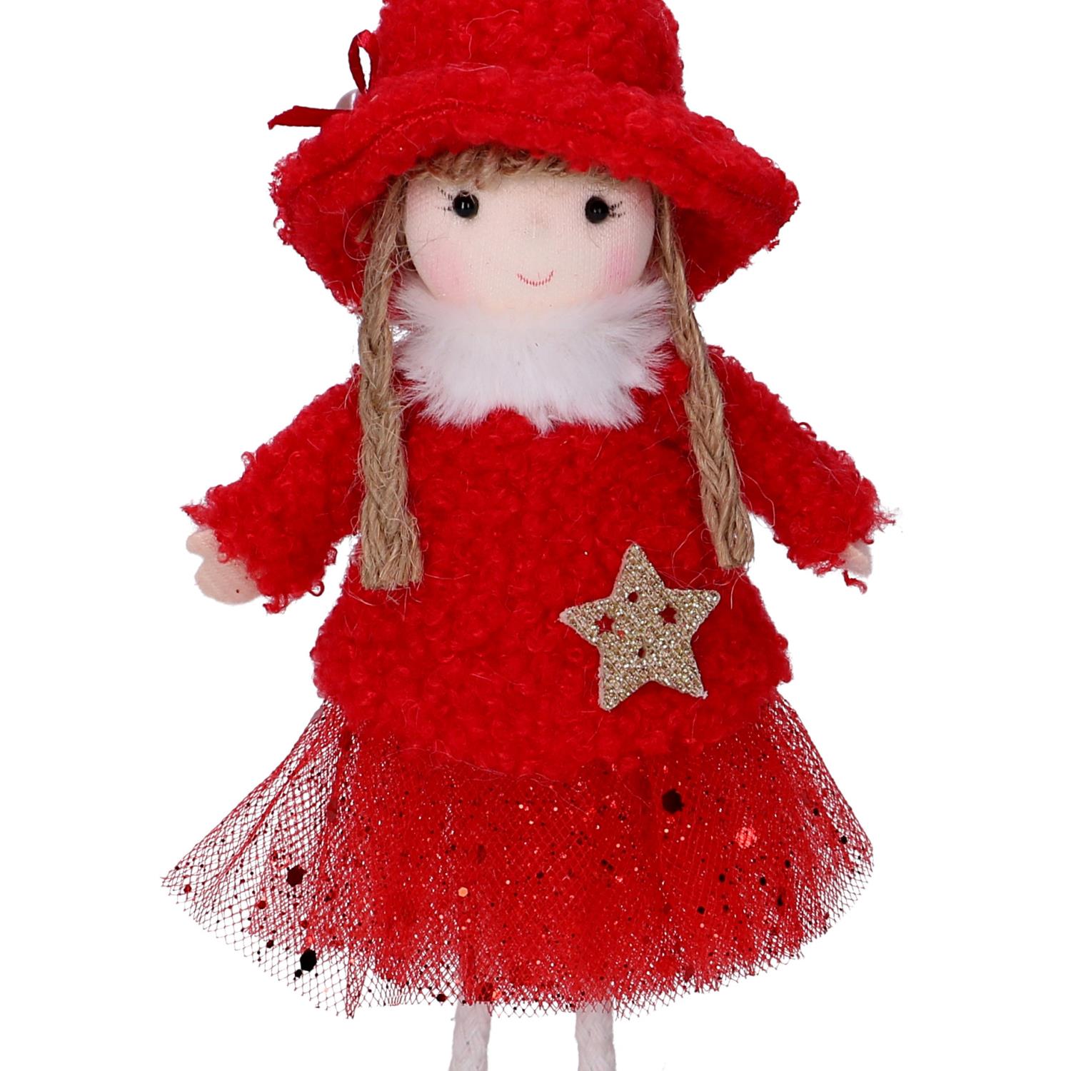 Bambolina tessuto rosso con cappello 3 assortiti cm5xh17