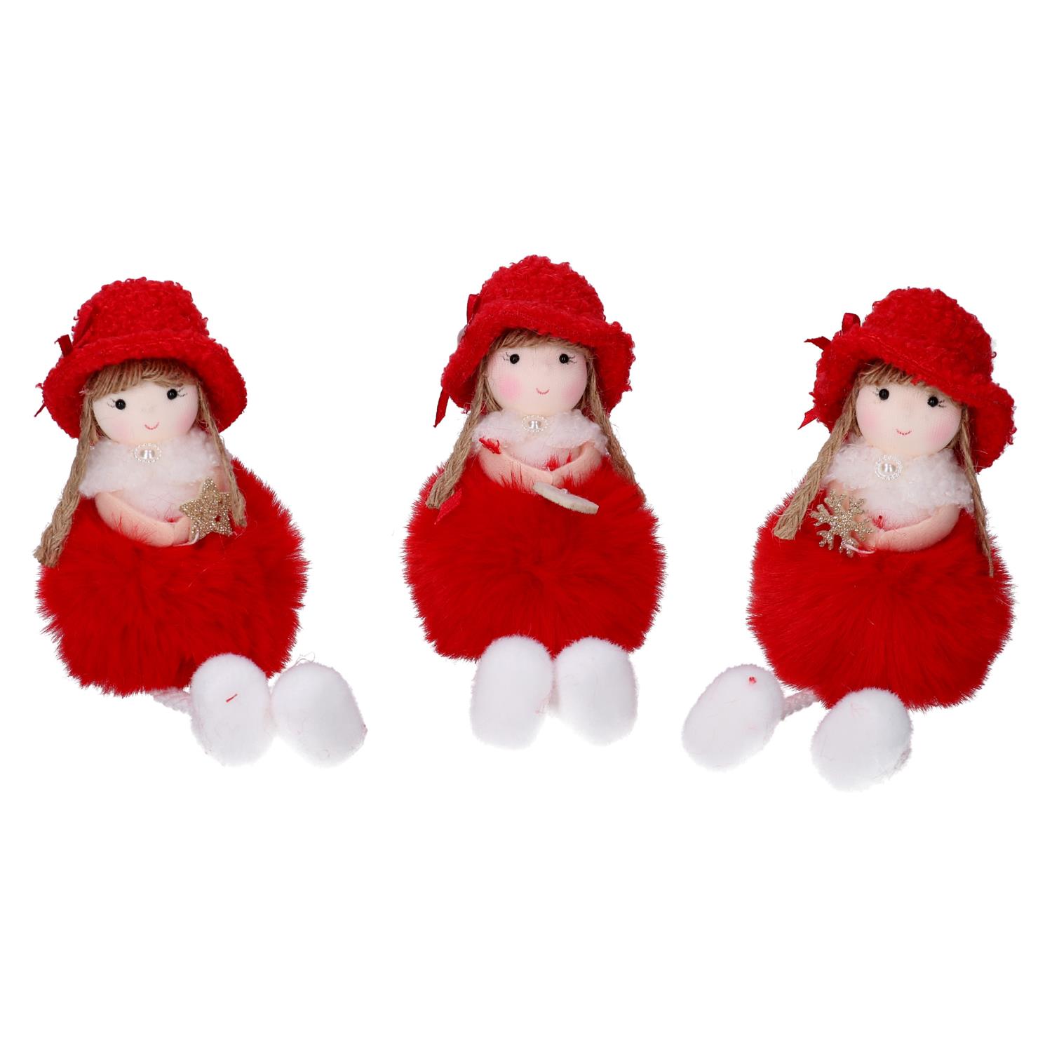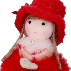Bambolina tessuto rosso con cappello 3 assortiti cm6h19