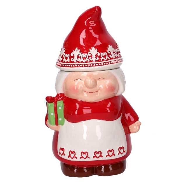 Barattolo ceramica gnoma rosso cm16x13h27n