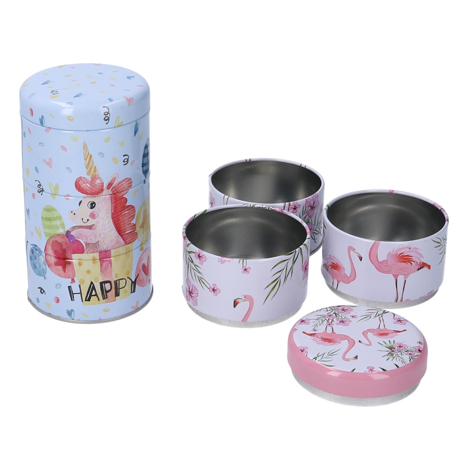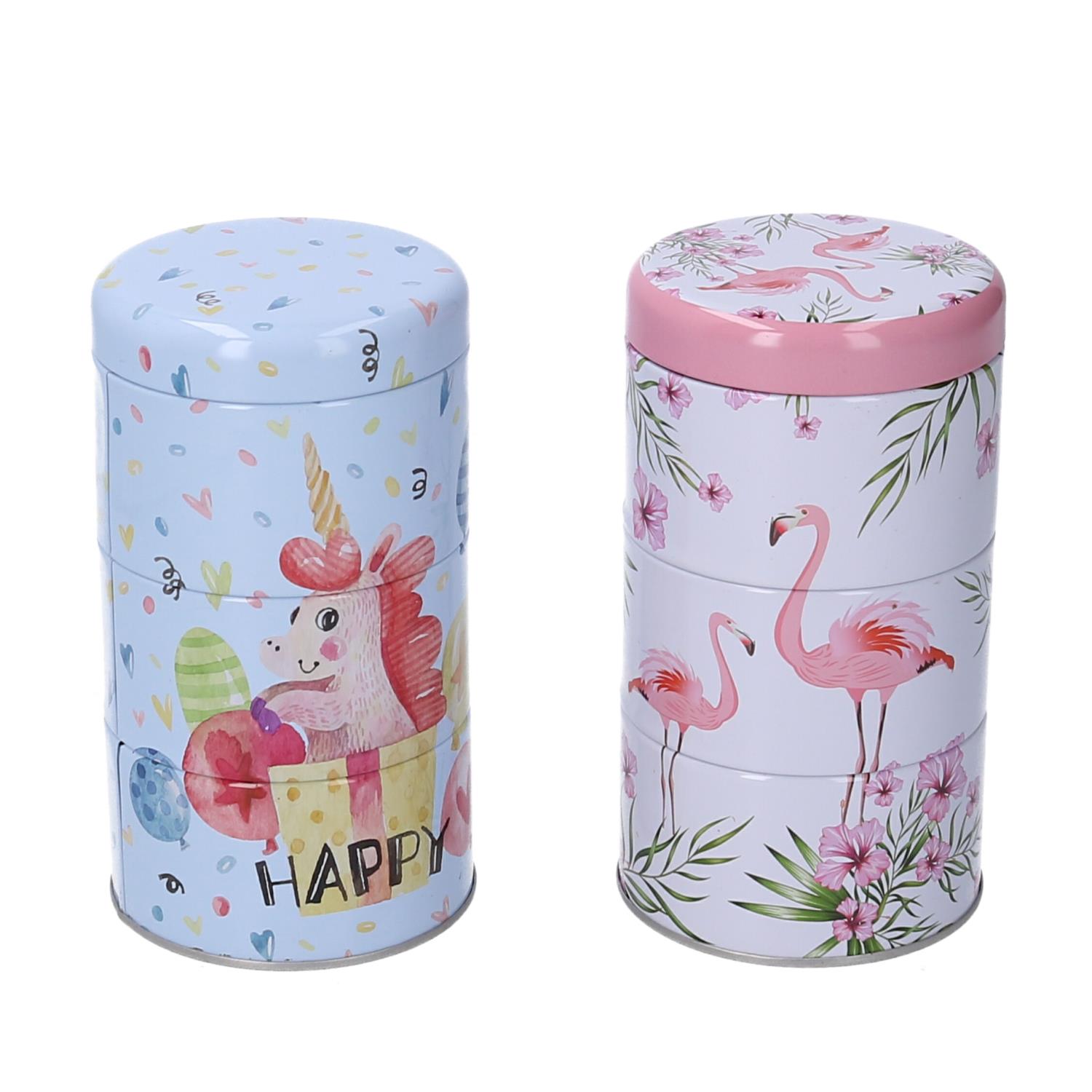 Barattolo metallo 3 piani fenicotteri tondo cmø8,5h15,8