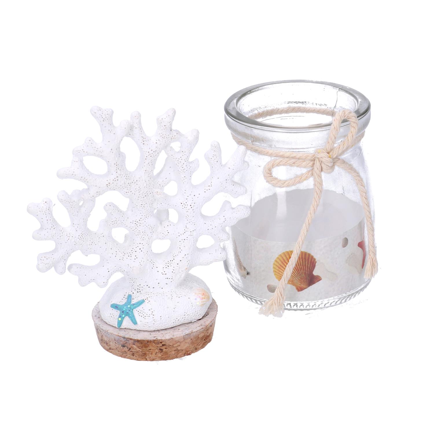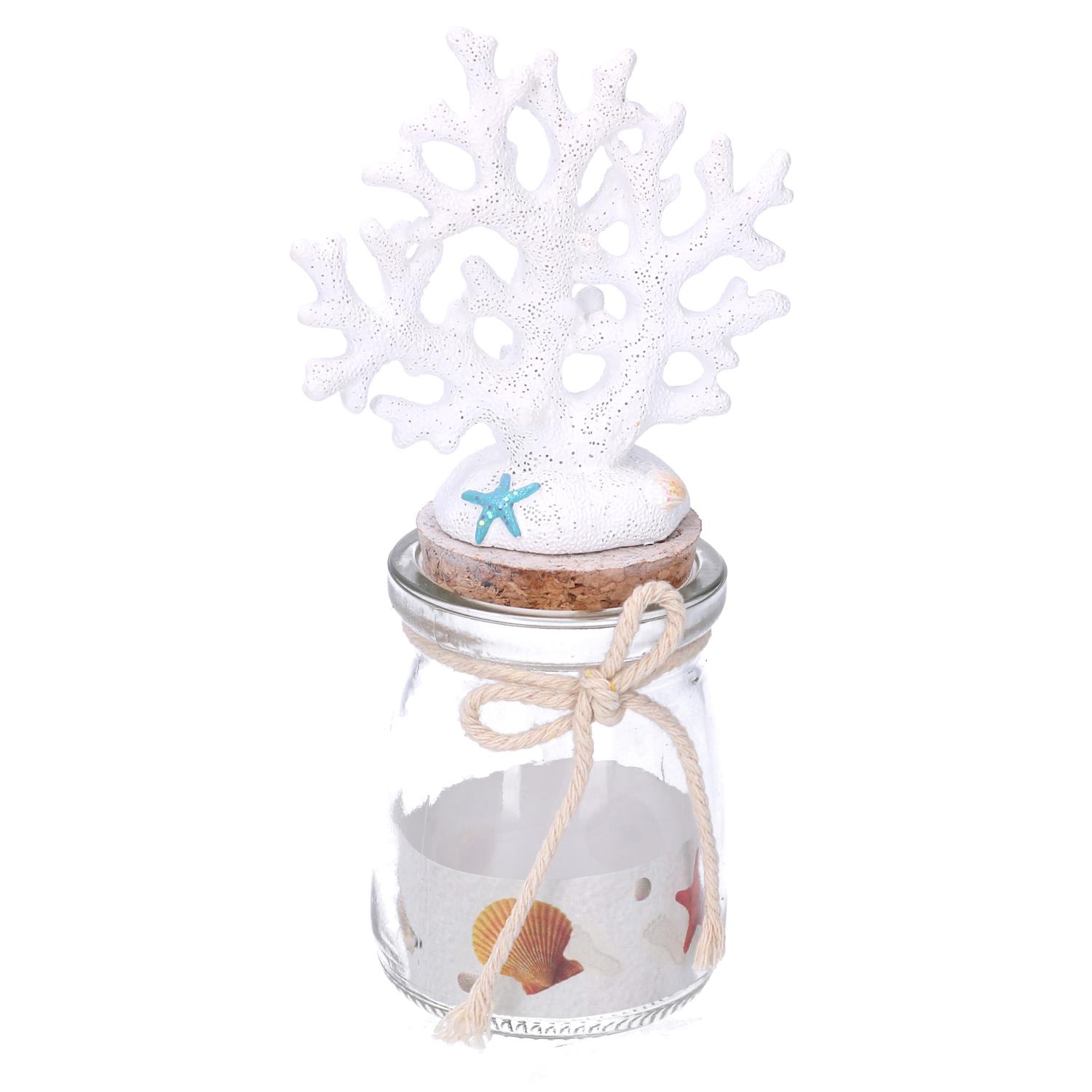 Barattolo vetro mare corallo bianco tondo cmø5h15