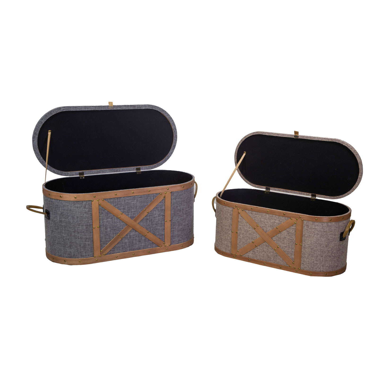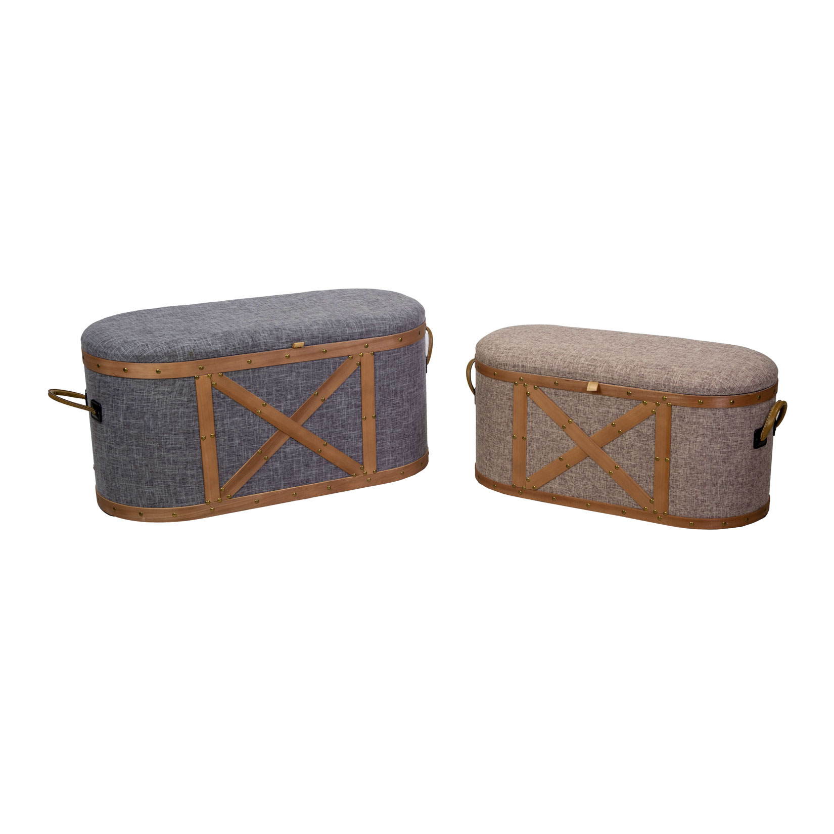 Baule legno tessuto 1^ beige e grigio ovale cm76x36h38nBaule legno tessuto 2^ beige e grigio ovale cm90x40h45
