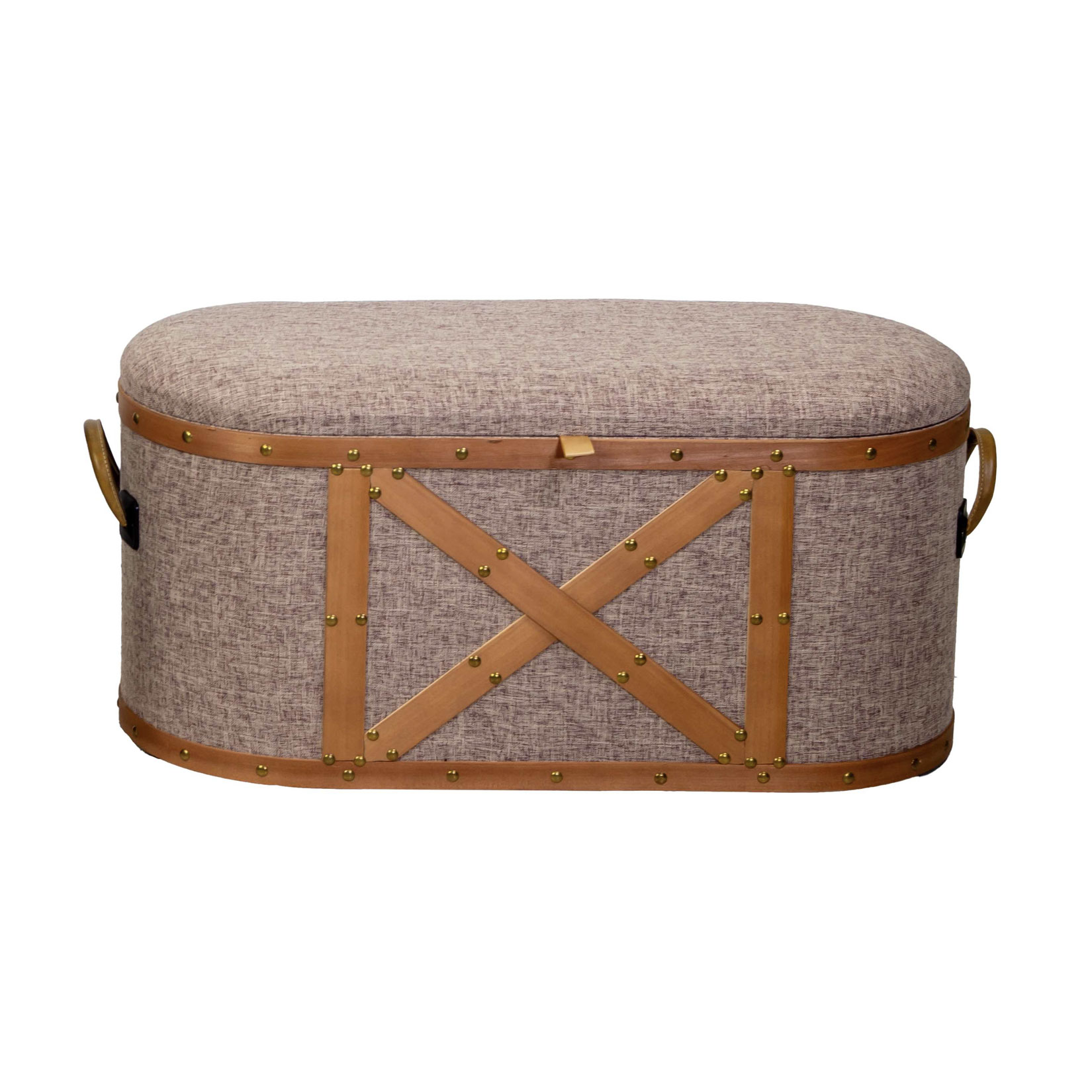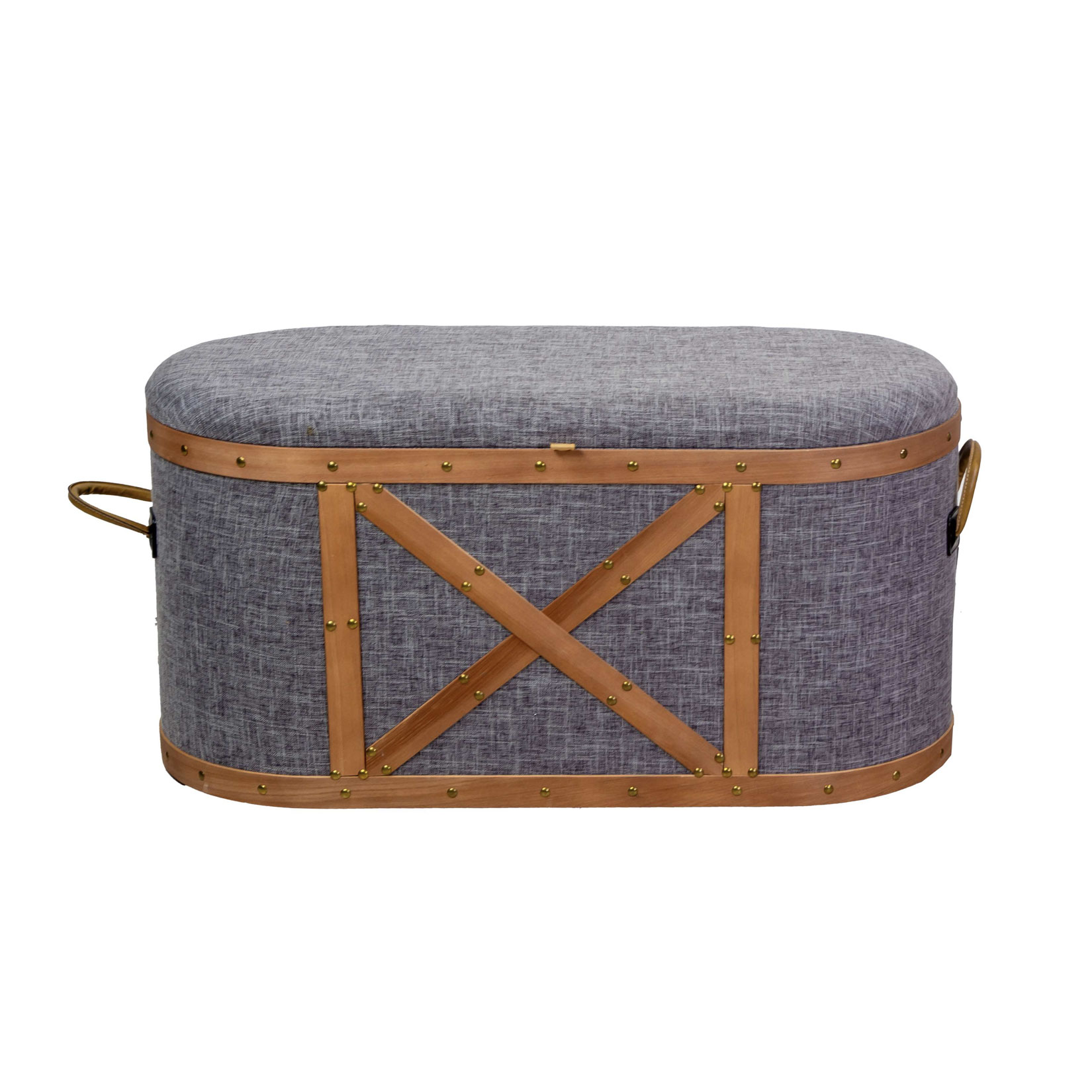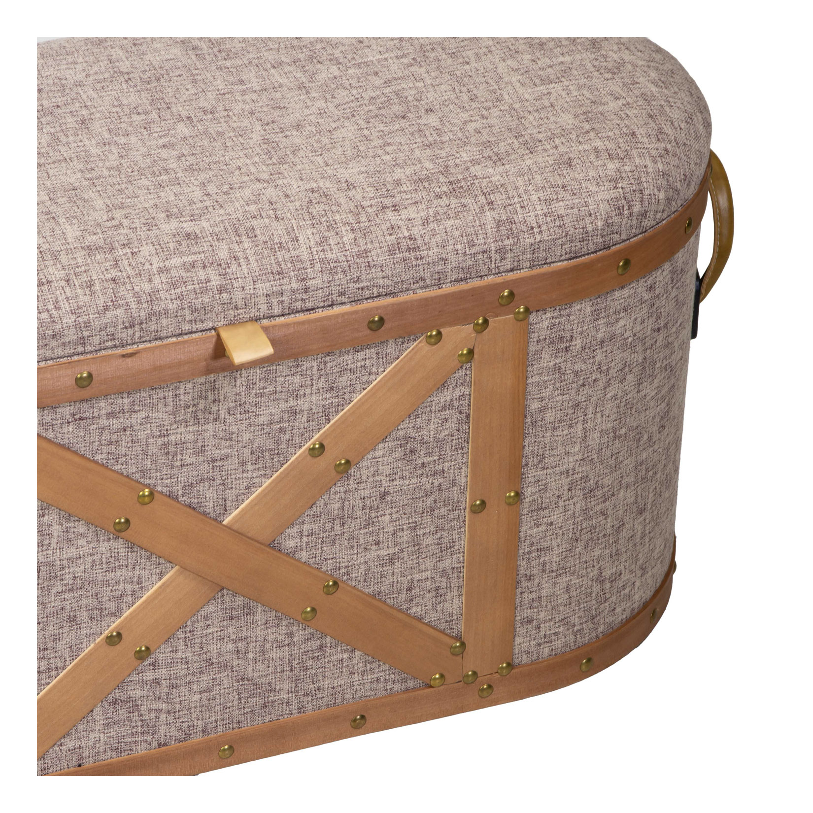 Baule legno tessuto 1^ beige e grigio ovale cm76x36h38