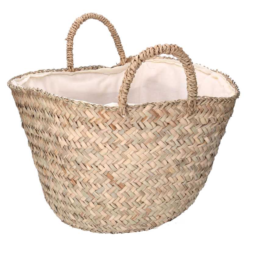 Borsa paglia naturale ideale per la spiaggia o per un look estivo. Realizzata in paglia naturale, ha dimensioni di ø45 cm di diametro e 32-40 cm di altezza, con un fondo di ø30 cm. Dotata di una comoda fodera interna per proteggere i tuoi oggetti personali. Perfetta per completare il tuo outfit estivo con stile e praticità.