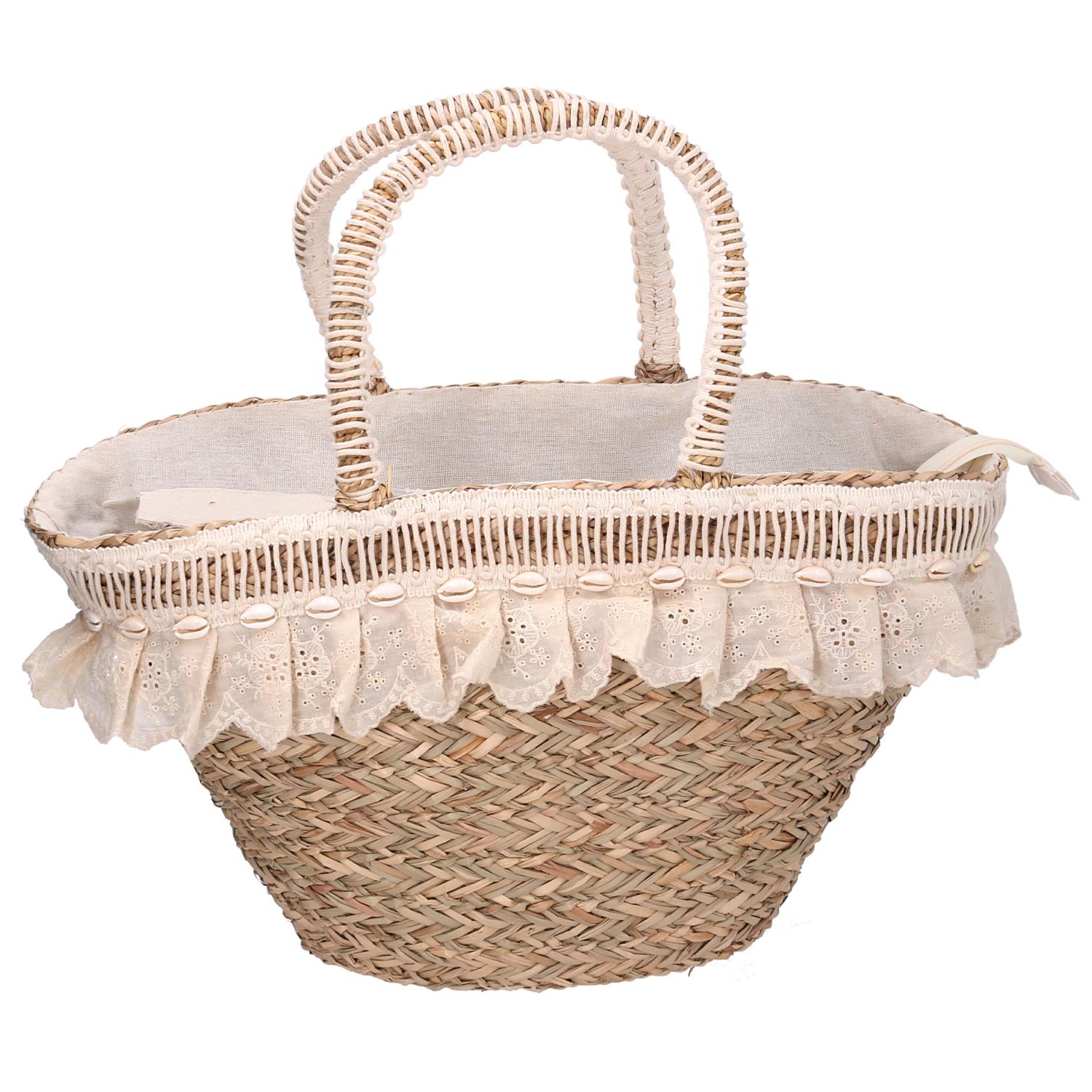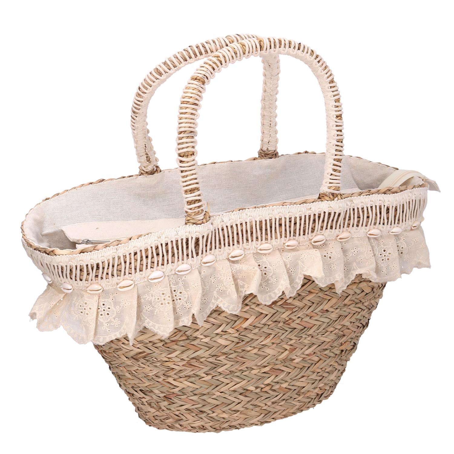 Borsa paglia naturale con pizzo crema econchiglie cm60x16h26/30