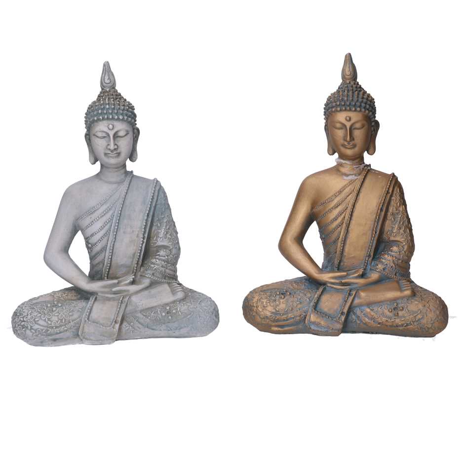 Buddha resina oro grigio 2 assortiti cm20x10h26,5