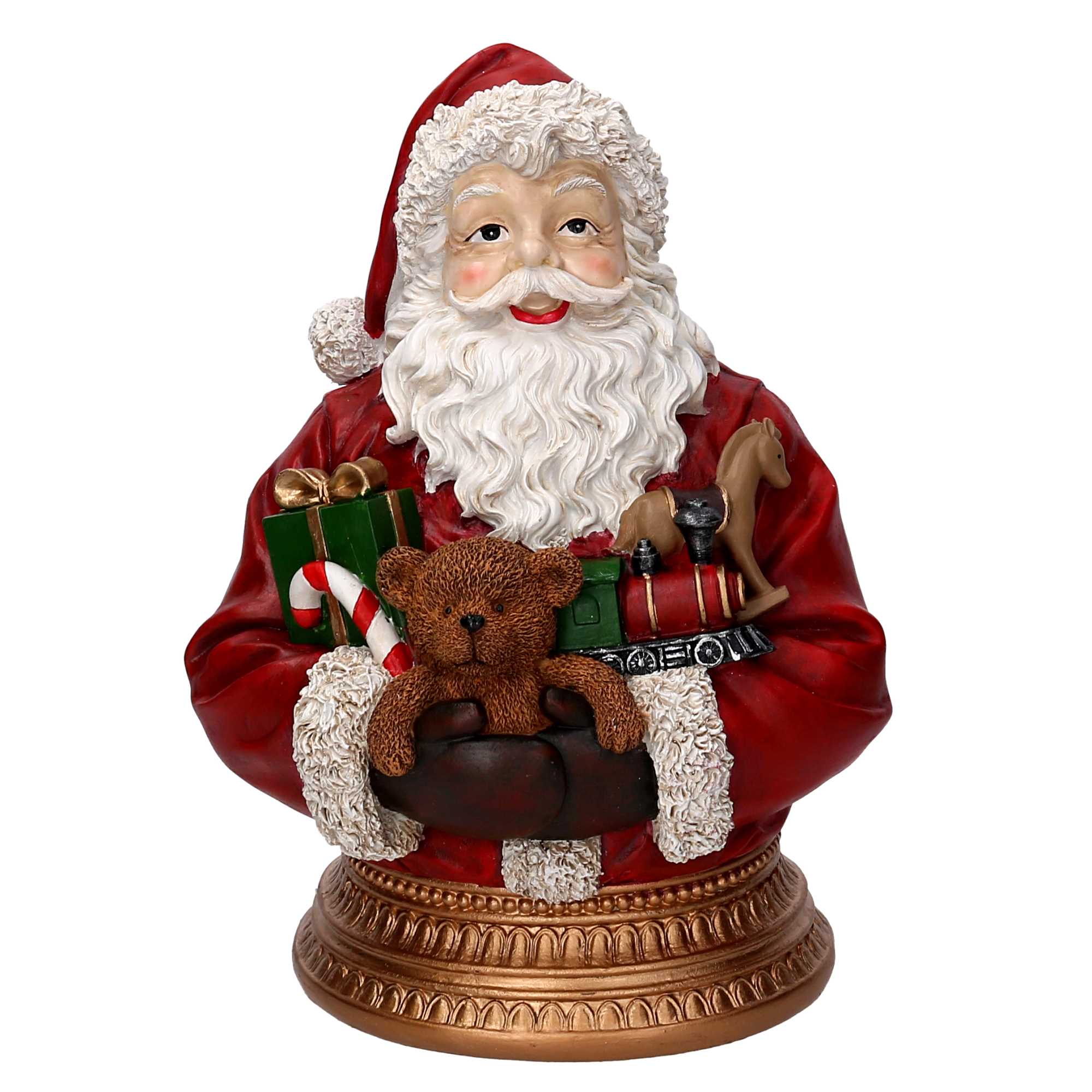 Busto babbo natale resina con regali rosso cm21,5×17,5h28,5