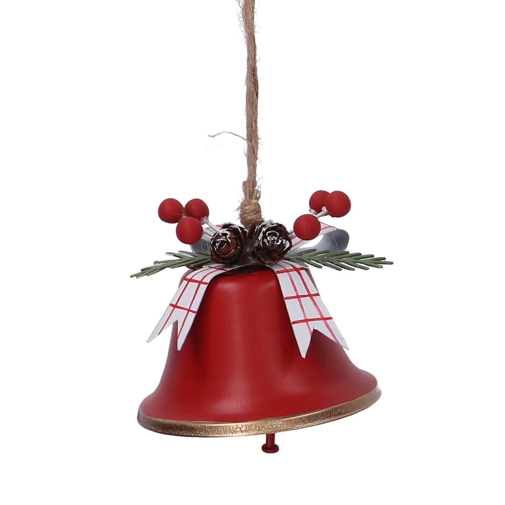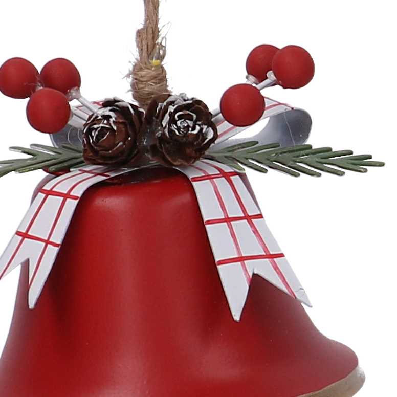 Campana metallo con pigne rosso cm ø7,5h6,5