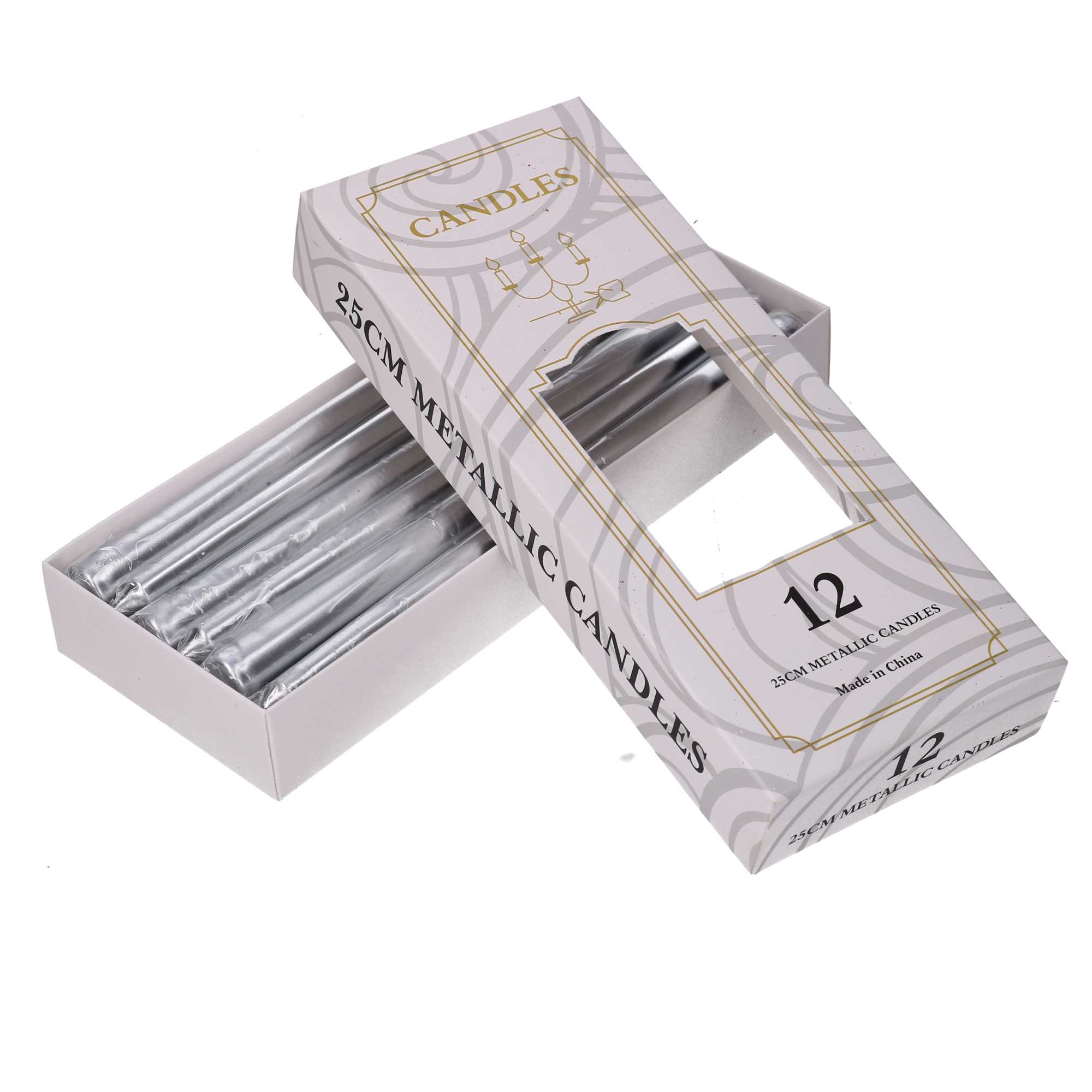 Candela paraffina confezione 12pz argento cm h25