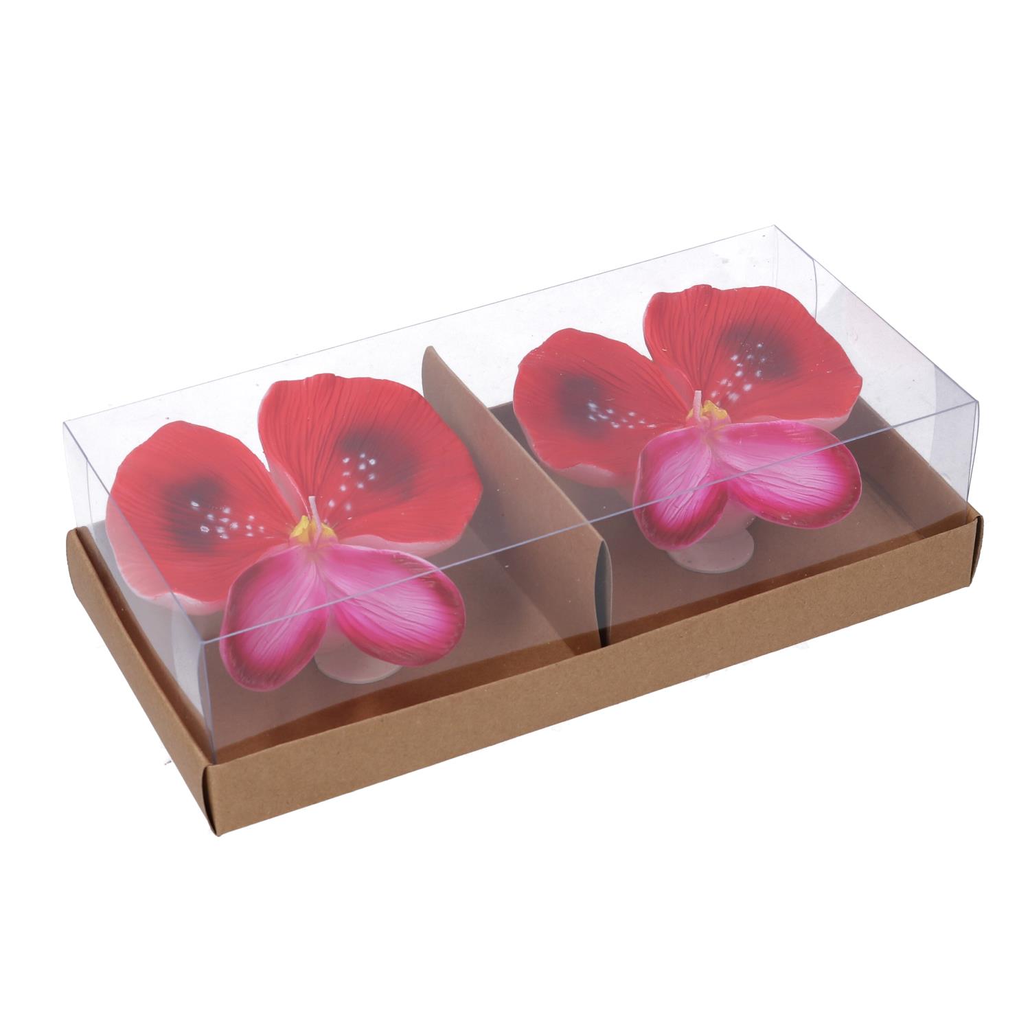 Candela paraffina confezione 2 pezzi fiore rosso cm21x10,5h5,5