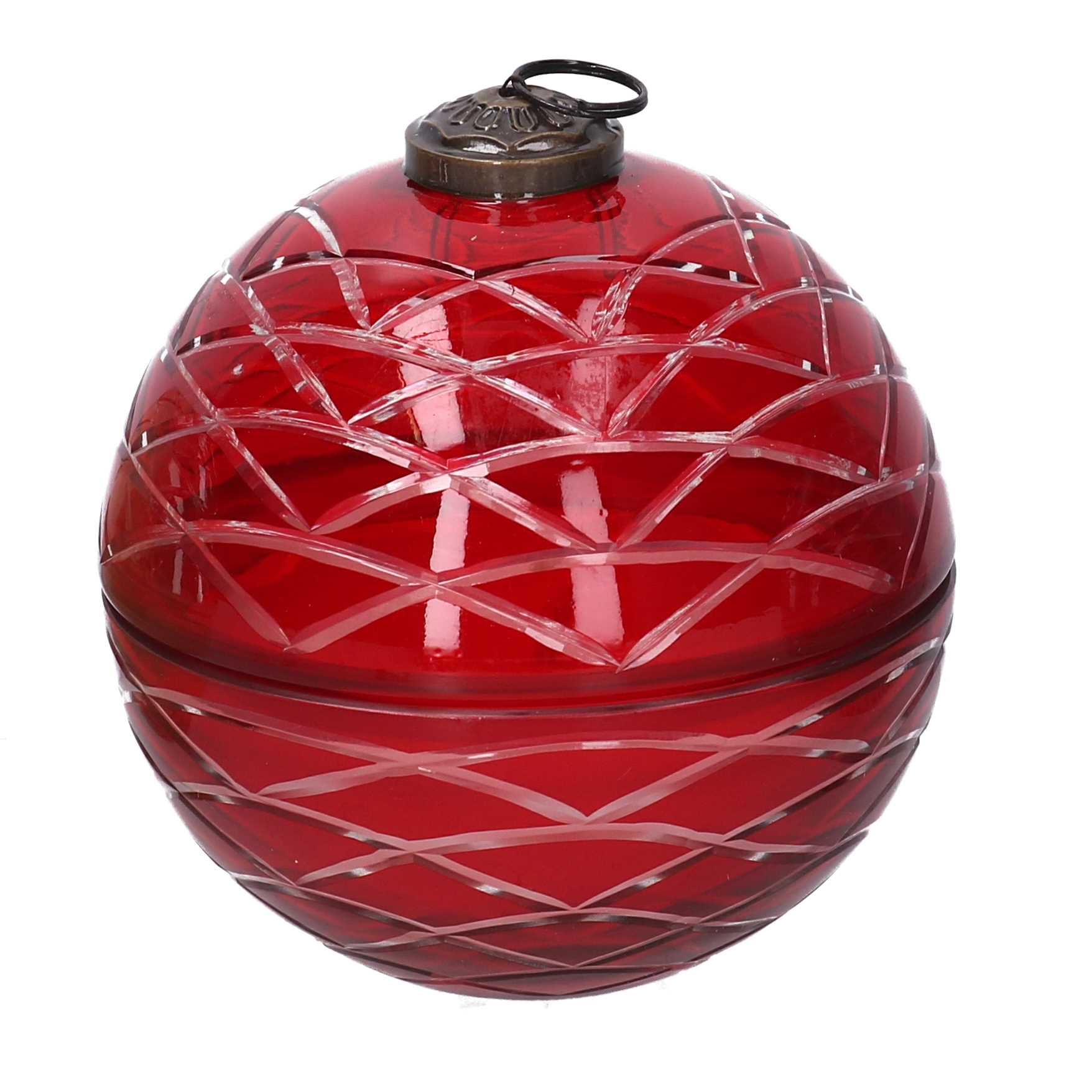 Candela paraffina profumata lavanda in sfera vetro rosso cmø10h10 scatola regalon