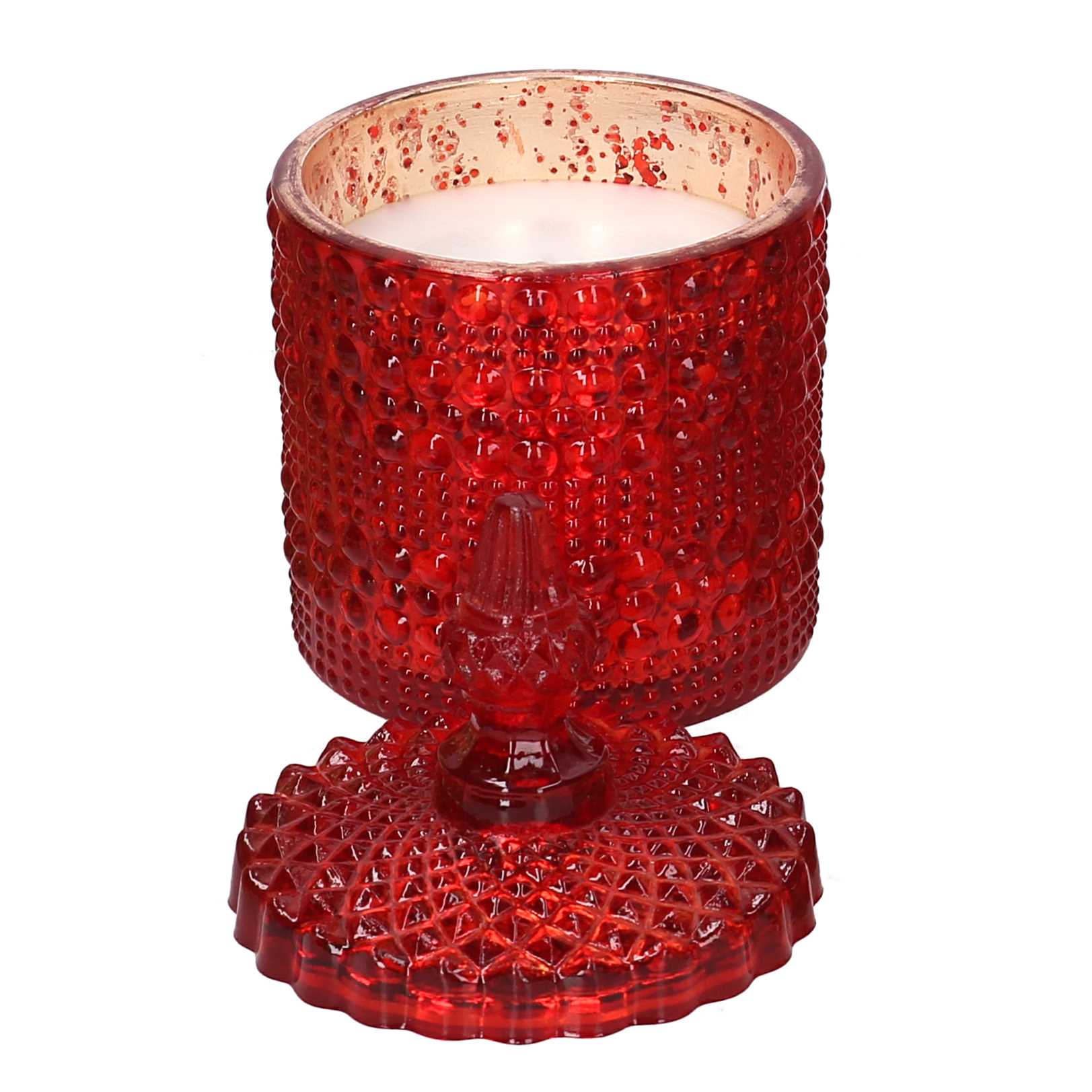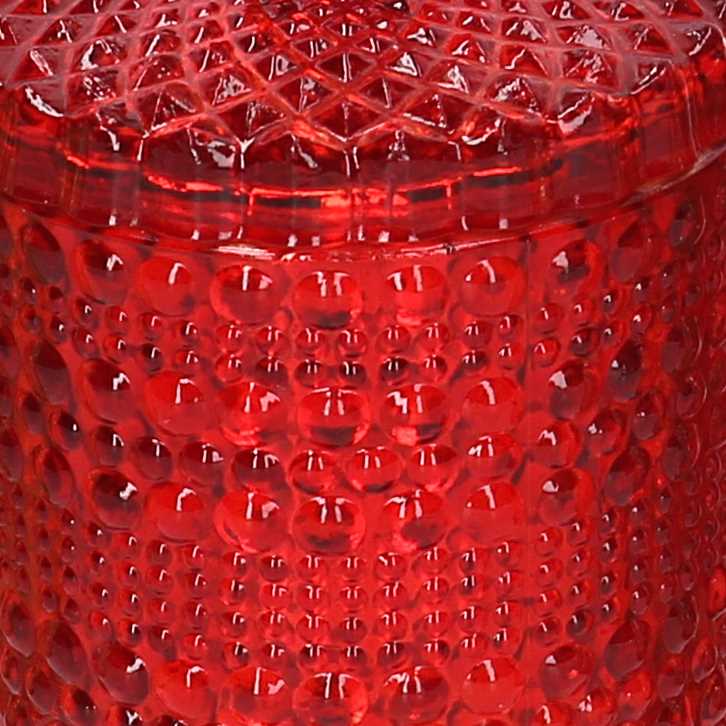 Candela paraffina profumata lavanda in vetro rosso cmø7,5h15 scatola regalon