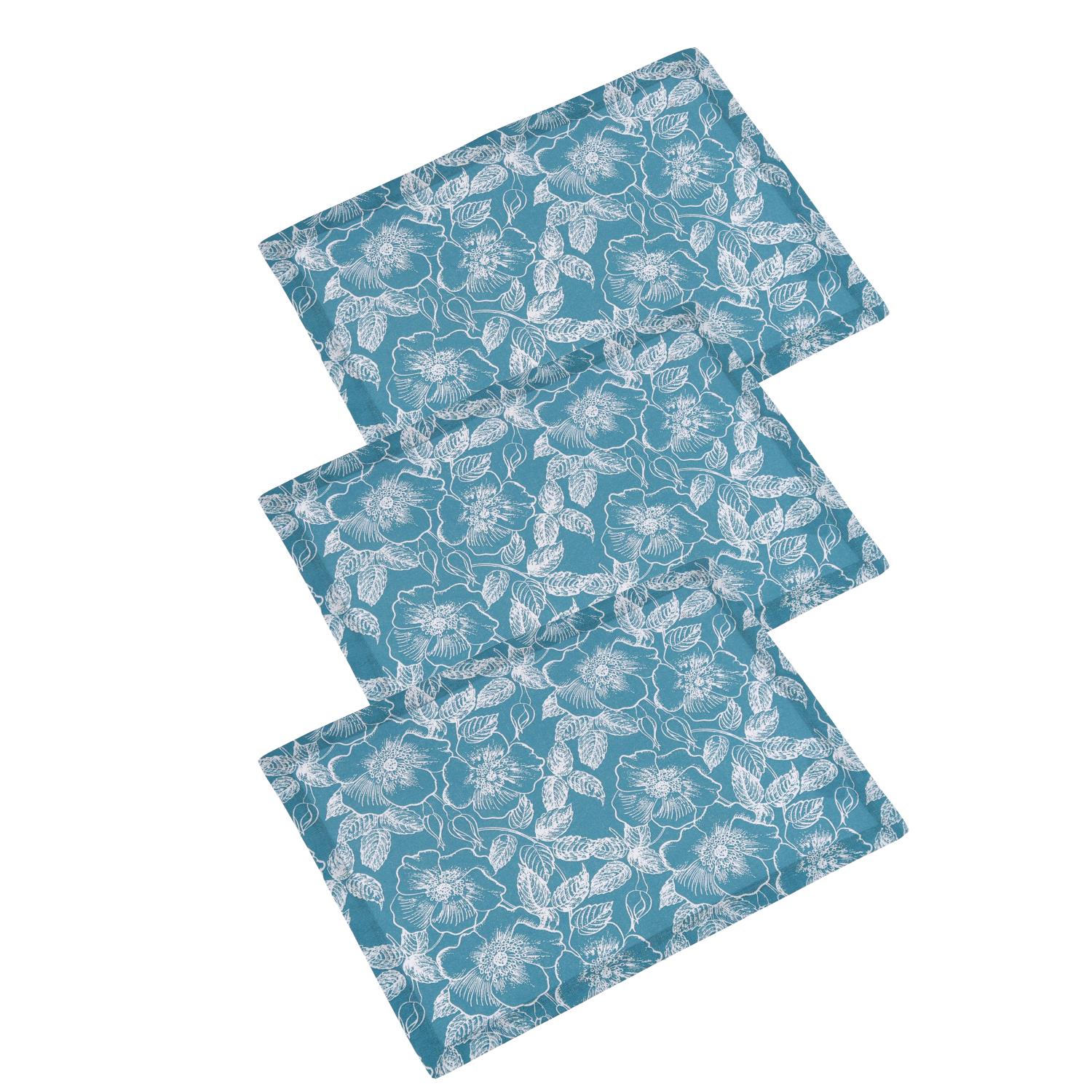Canovaccio tessuto wild rose set 3 pezzi blu petrolio cm50x70n