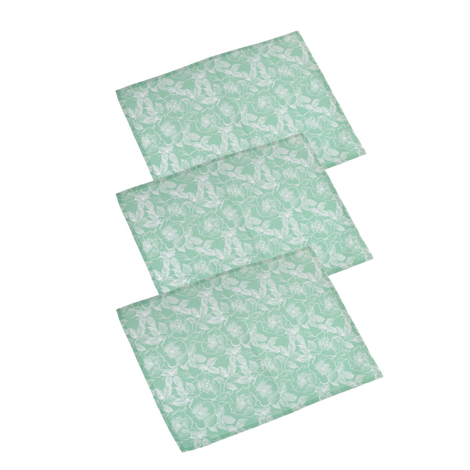 Canovaccio tessuto wild rose set 3 pezzi verde acqua cm50x70