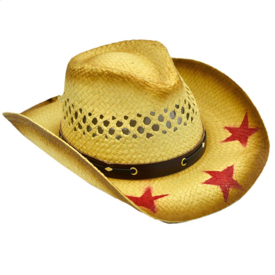 Cappello paglia cow-boy stelle taglie 57/58/59 cm28xh35x13