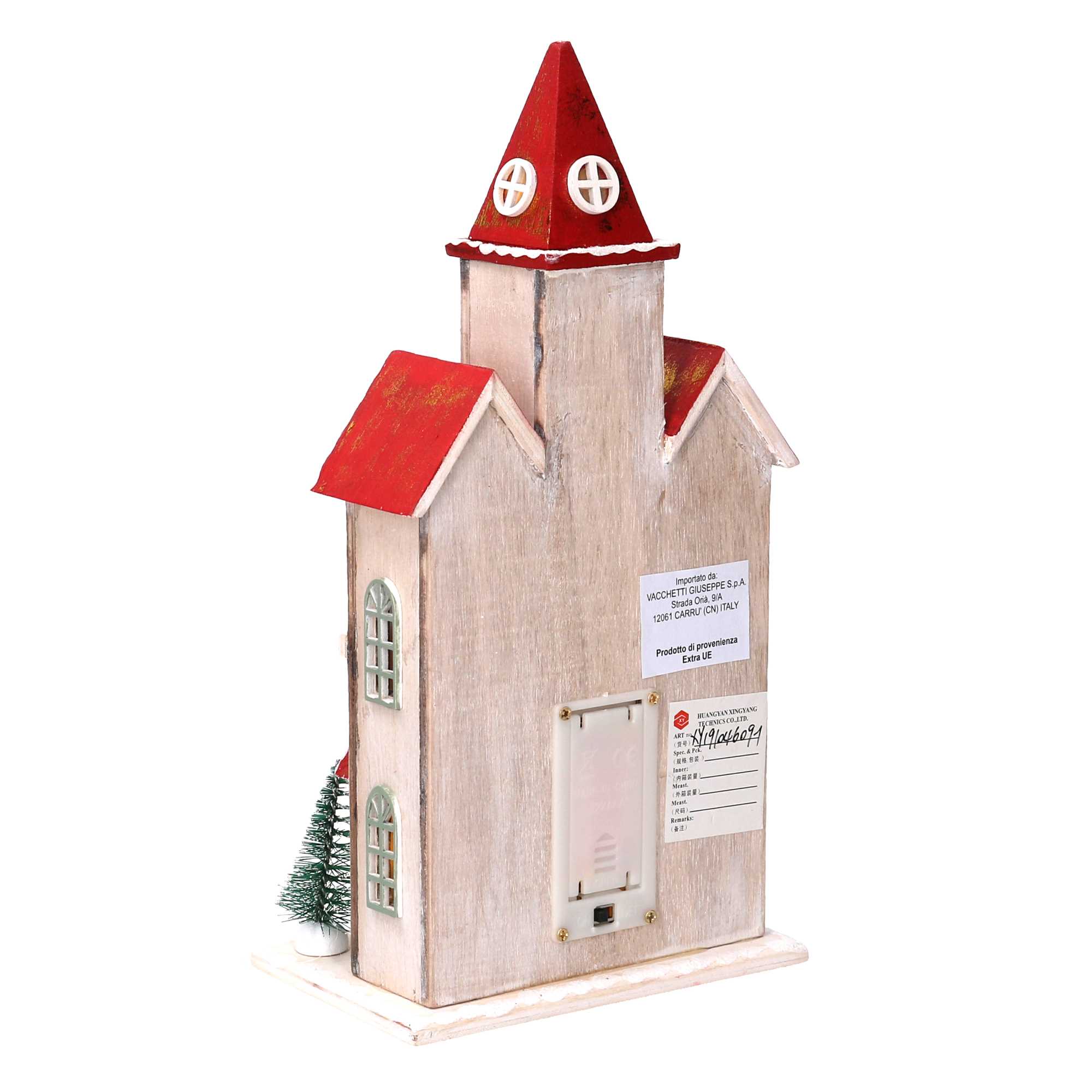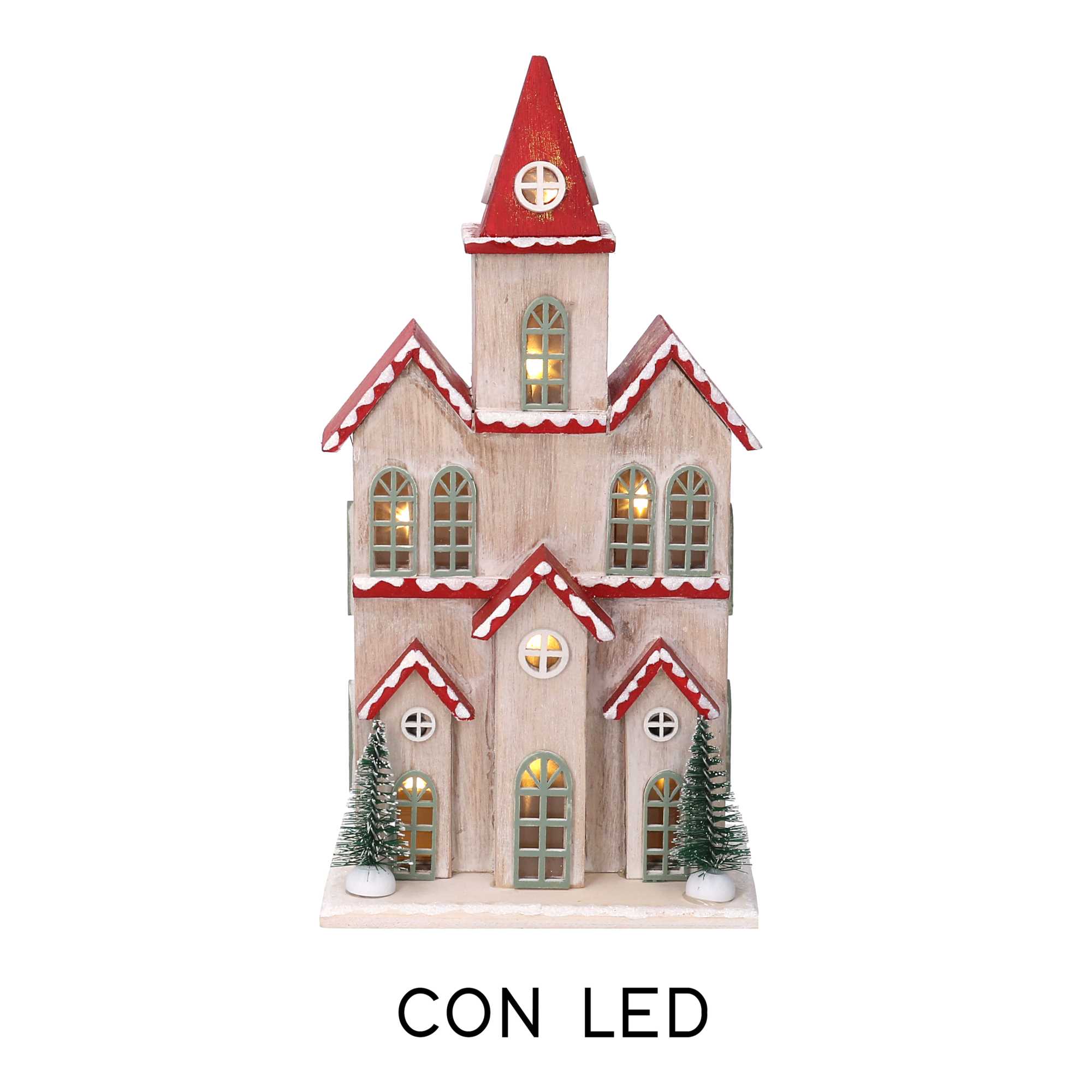 Casetta legno chiesa rosso con led cm13,5×8,3h27,5