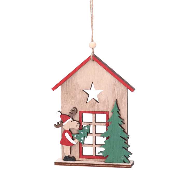 Casetta legno con renna naturale cm11x2,5×26,5