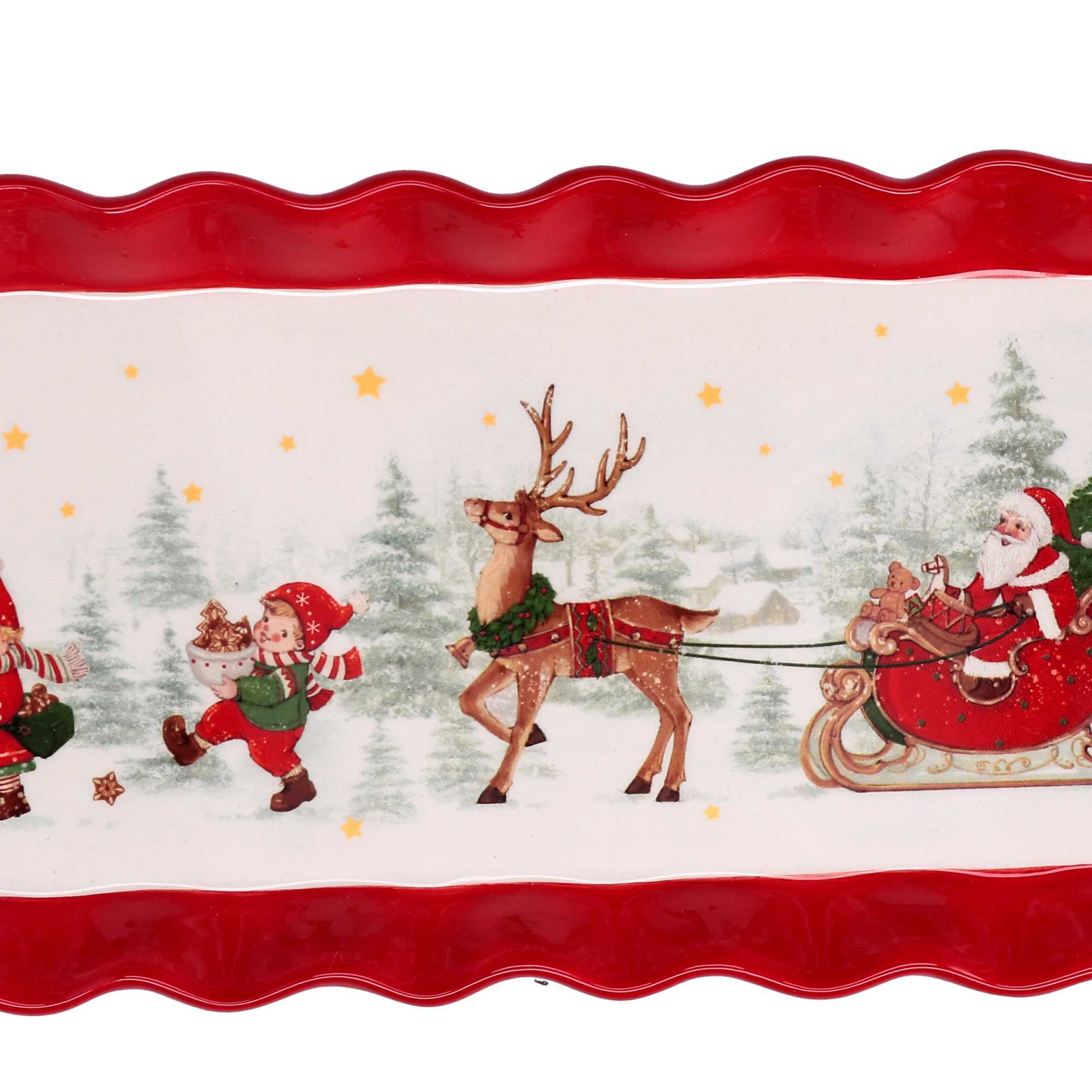 Centrotavola ceramica rosso e bianco rettangolare slitta cm38,3×15,5×3,4