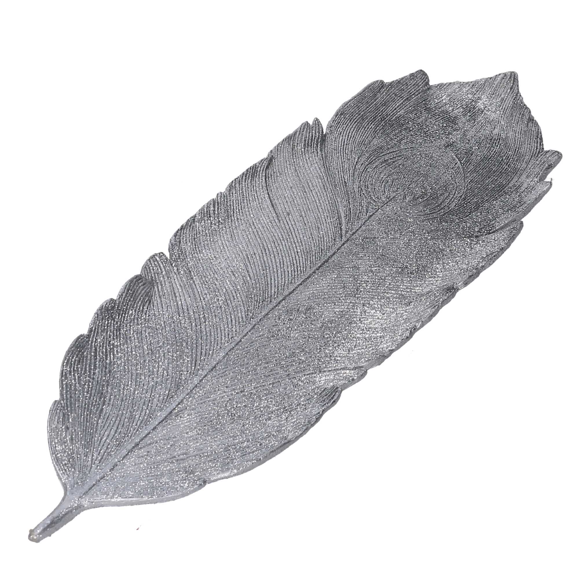Centrotavola resina piuma argento cm38x13h2,5
