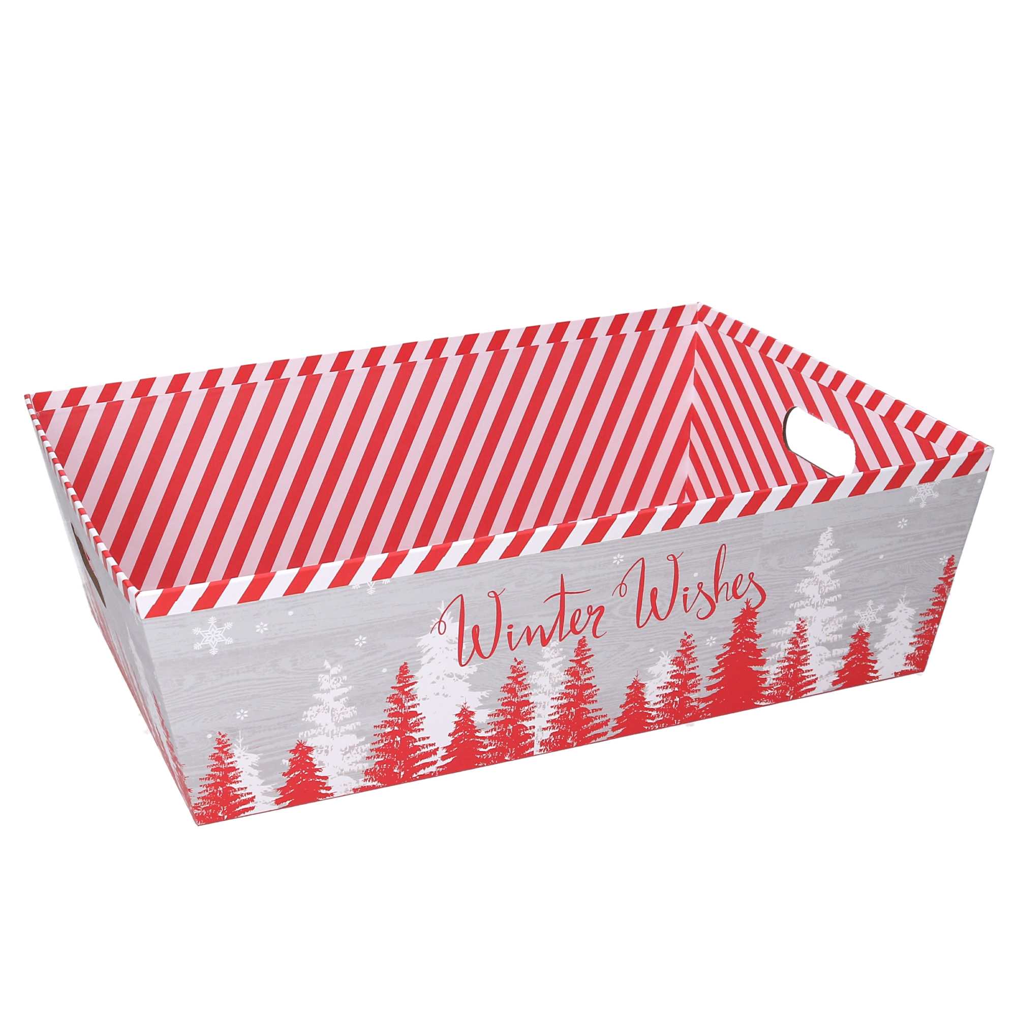 Cesta cartone alberi grigio rosso rettangolare cm40x30h12. Misura fondo: 36.5x26cm. Realizzata in resistente cartone, questa cesta rettangolare presenta un design elegante con motivi alberi grigio e rosso. Le dimensioni generose di cm 40x30x12 la rendono perfetta per contenere oggetti di varie dimensioni. Adatta per l’organizzazione e la conservazione in casa o in ufficio.