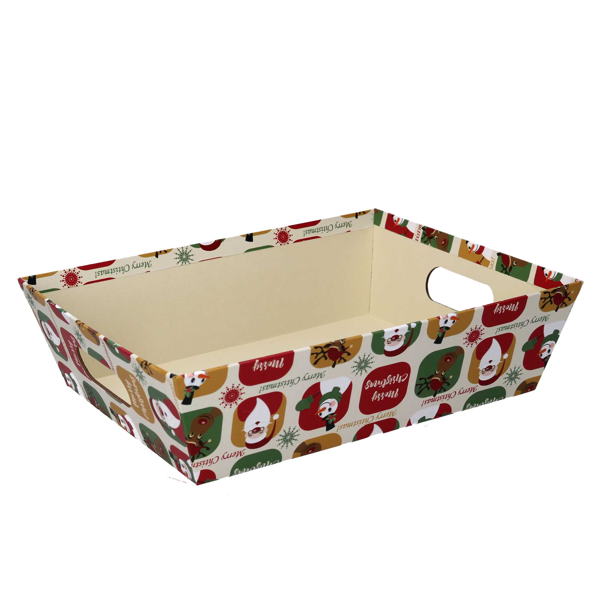 Cesta cartone babbo natale beige rettangolare cm31x22h9