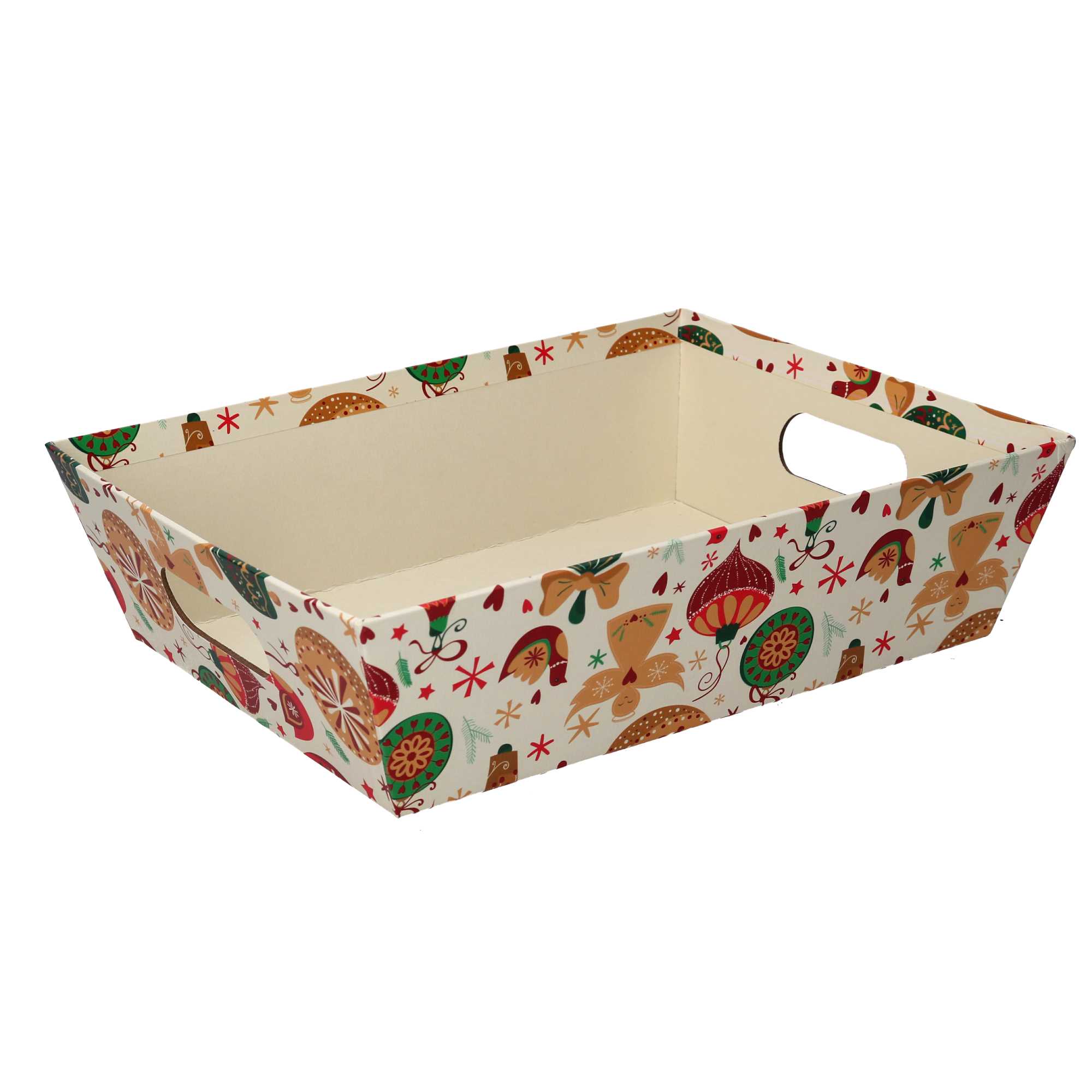 Cesta cartone fiocchi di neve beige rettangolare cm29x23h8