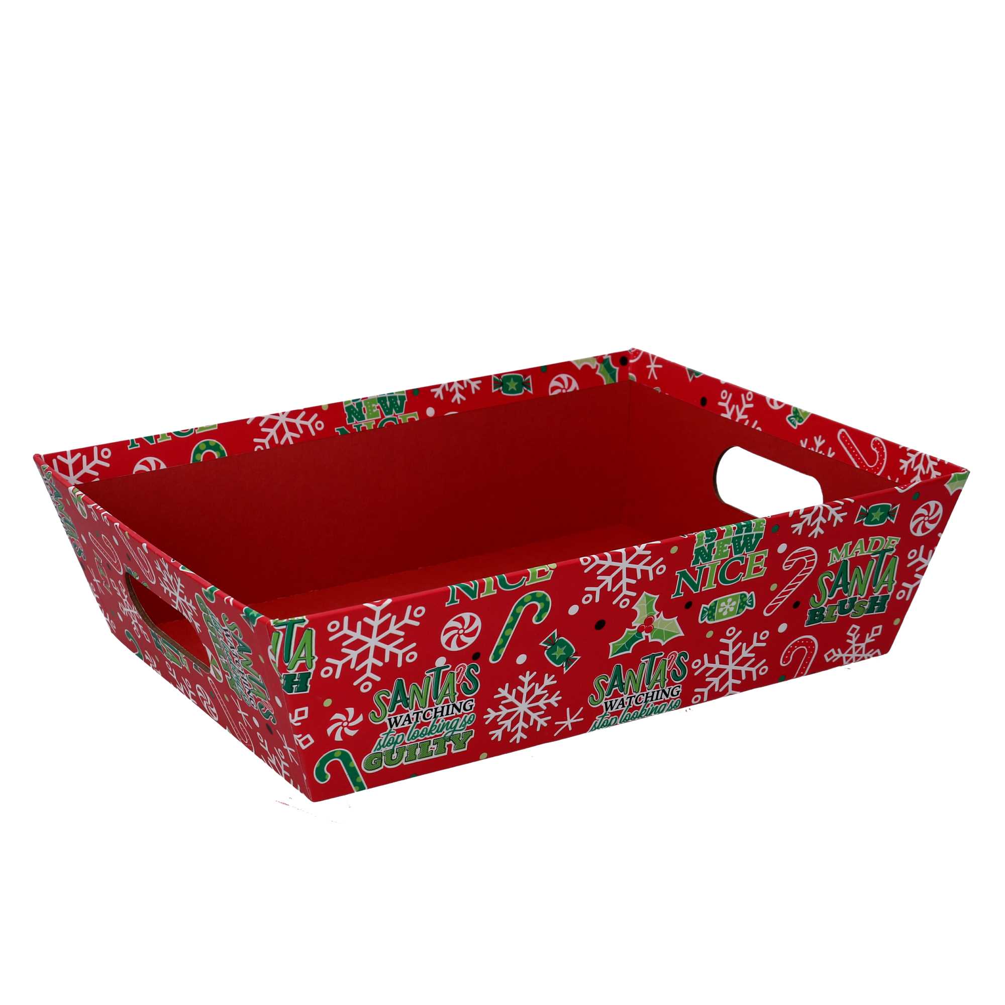 Cesta cartone fiocchi di neve rosso rettangolare cm29x23h8