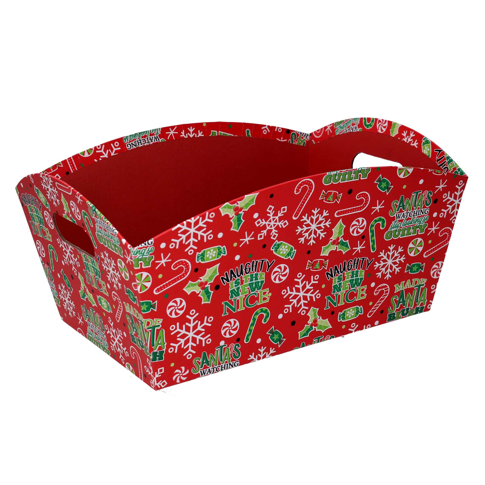 Cesta cartone fiocchi di neve rosso rettangolare cm38/40x27h15