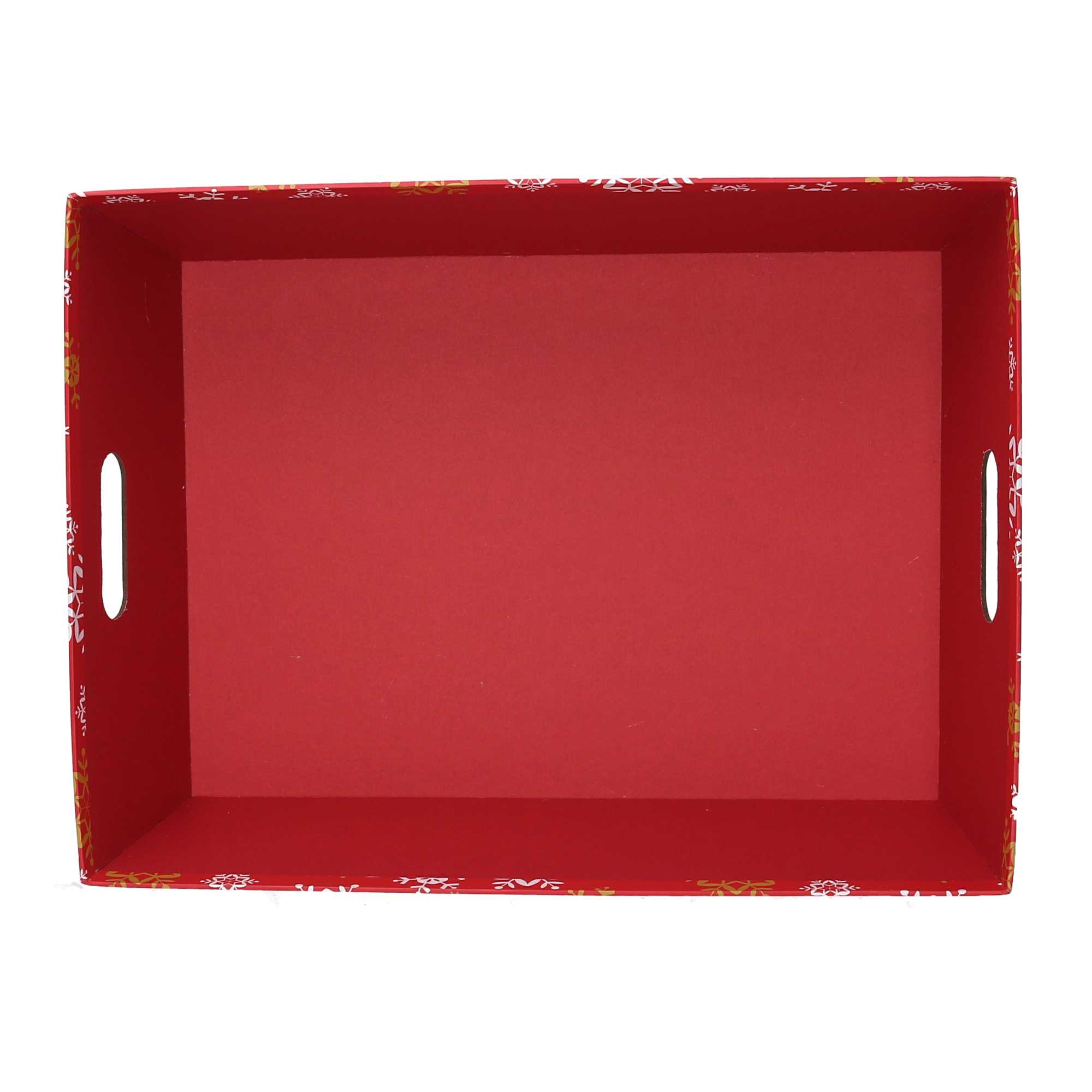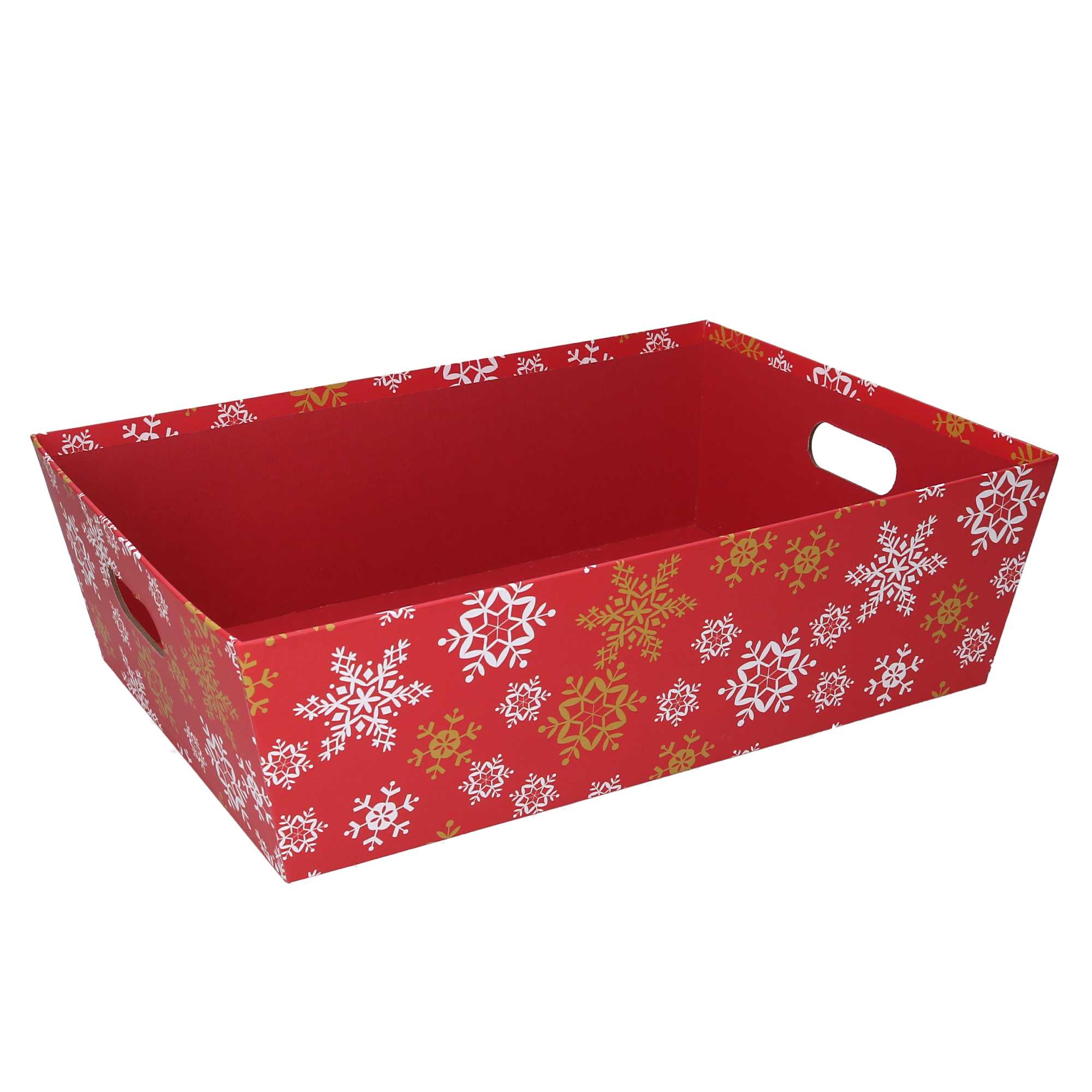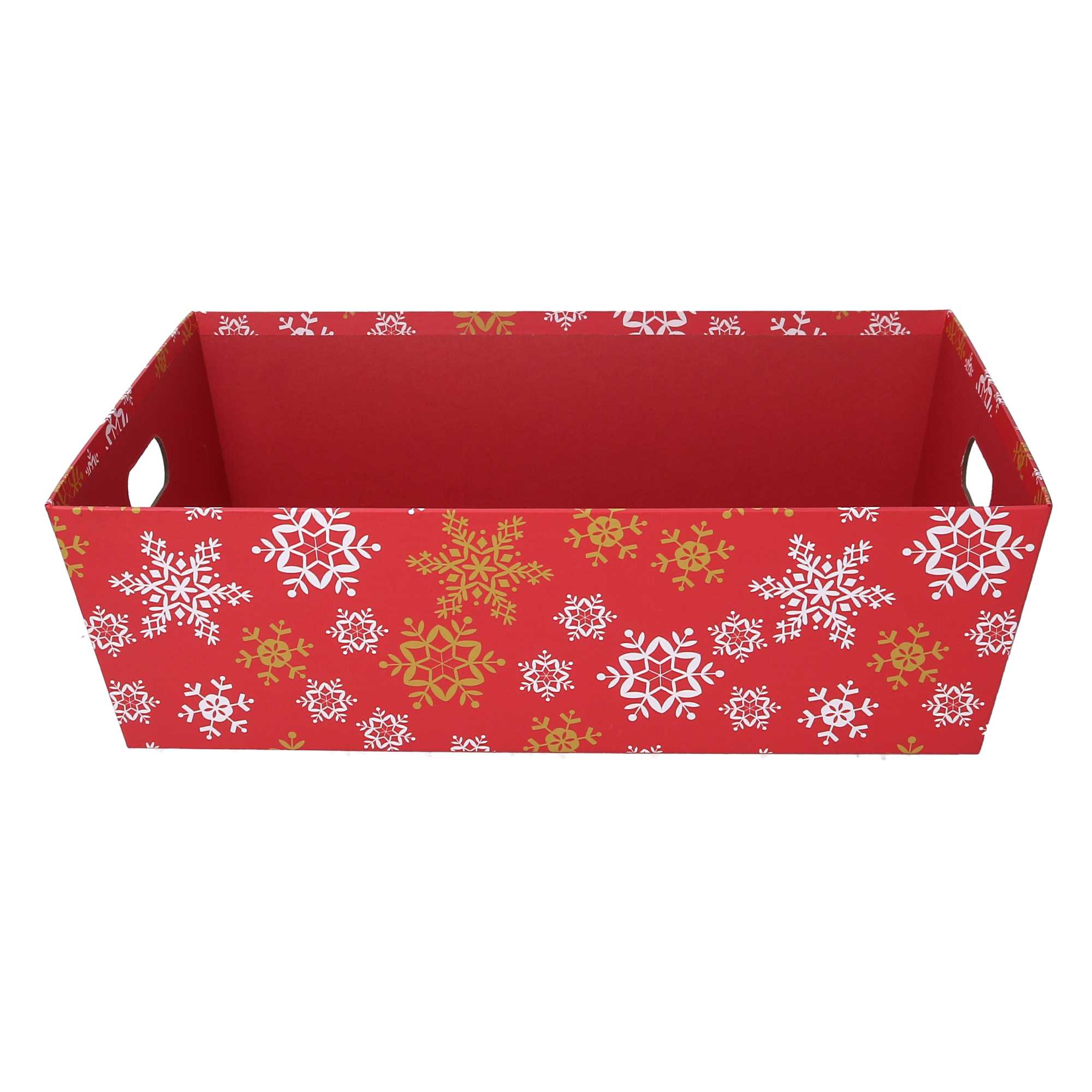 Cesta cartone fiocchi di neve rosso rettangolare cm40x30h12. Ideale per decorare la tua casa durante le festività natalizie. Realizzata in resistente cartone, con un design a fiocchi di neve rosso su sfondo bianco. Le dimensioni della cesta sono 40x30x12 cm, mentre il fondo misura 36.5×26 cm. Perfetta per contenere regali, dolci o decorazioni natalizie. Acquistala ora e aggiungi un tocco di festa alla tua casa!