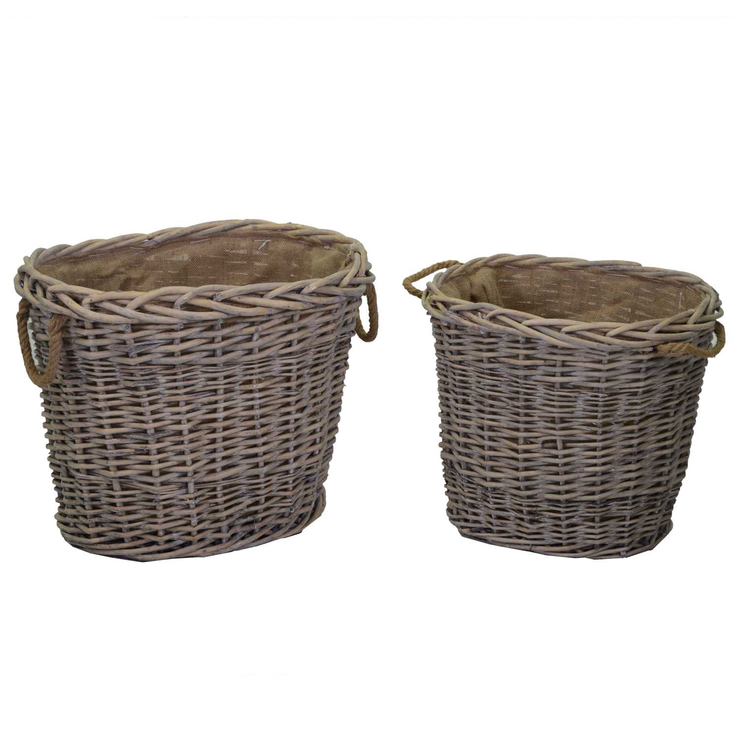Cesta portalegna vimini con manici 1-2 foderata juta naturale ovale cm57x46h46