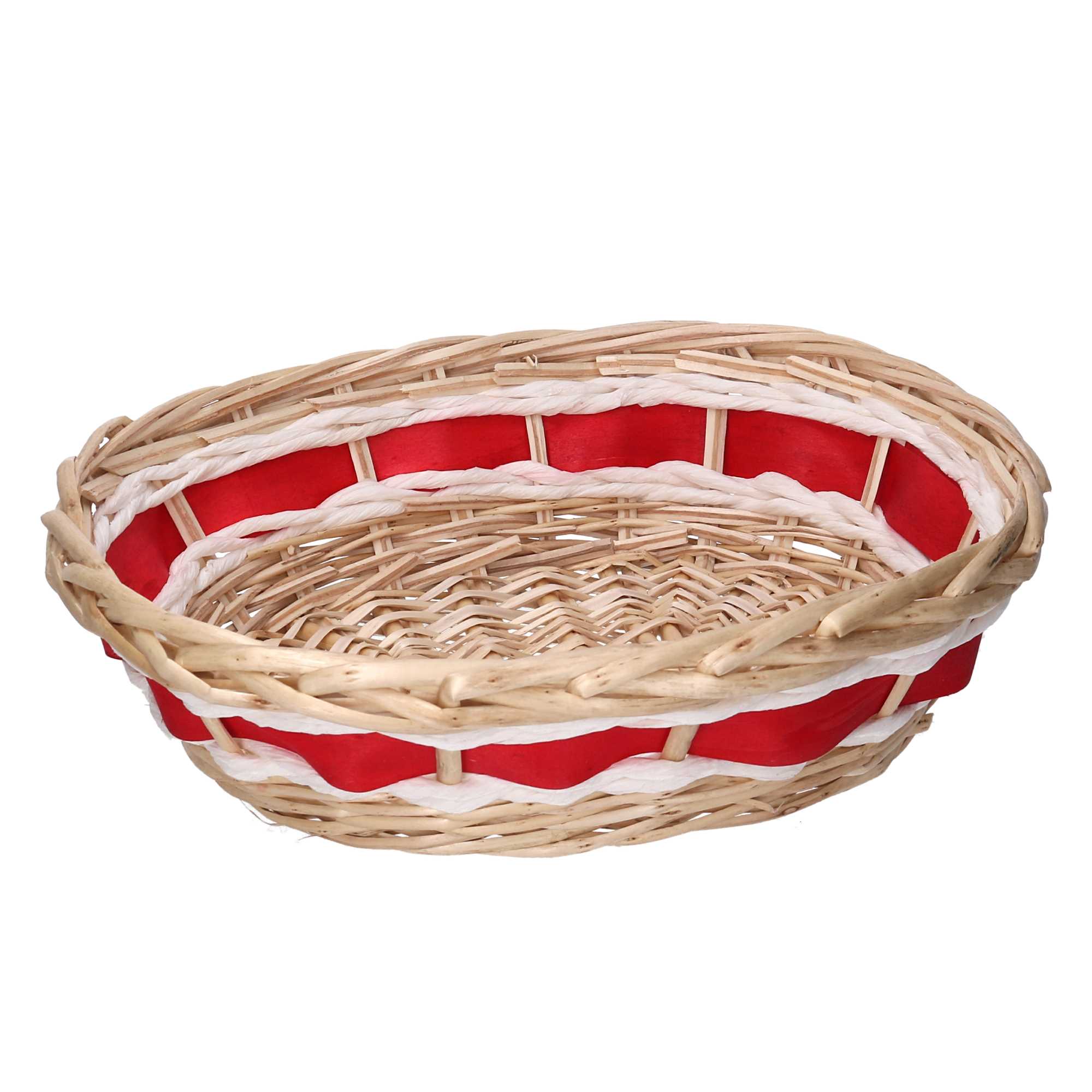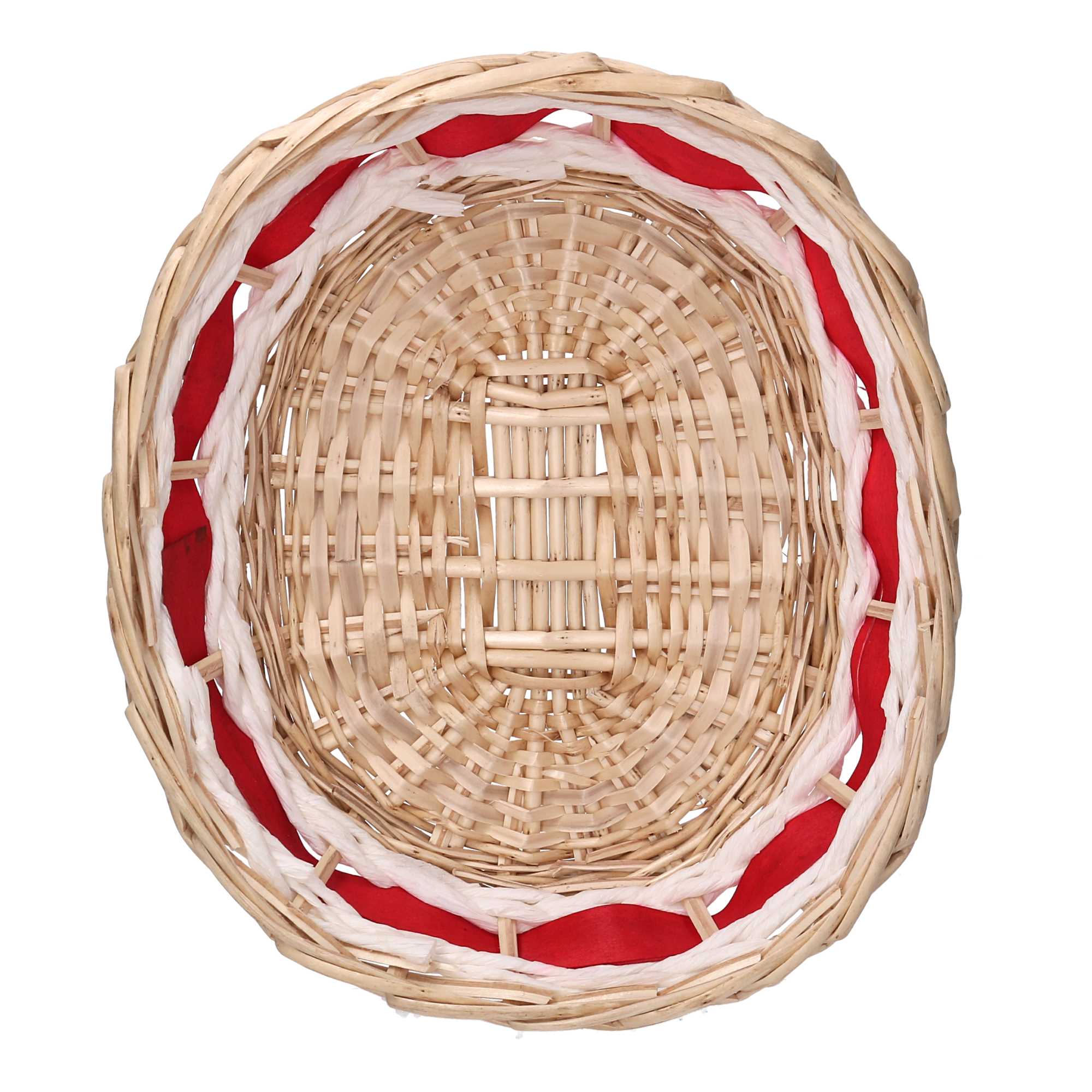 Cesta vimini intreccio rosso bianco ovale cm35x30h10