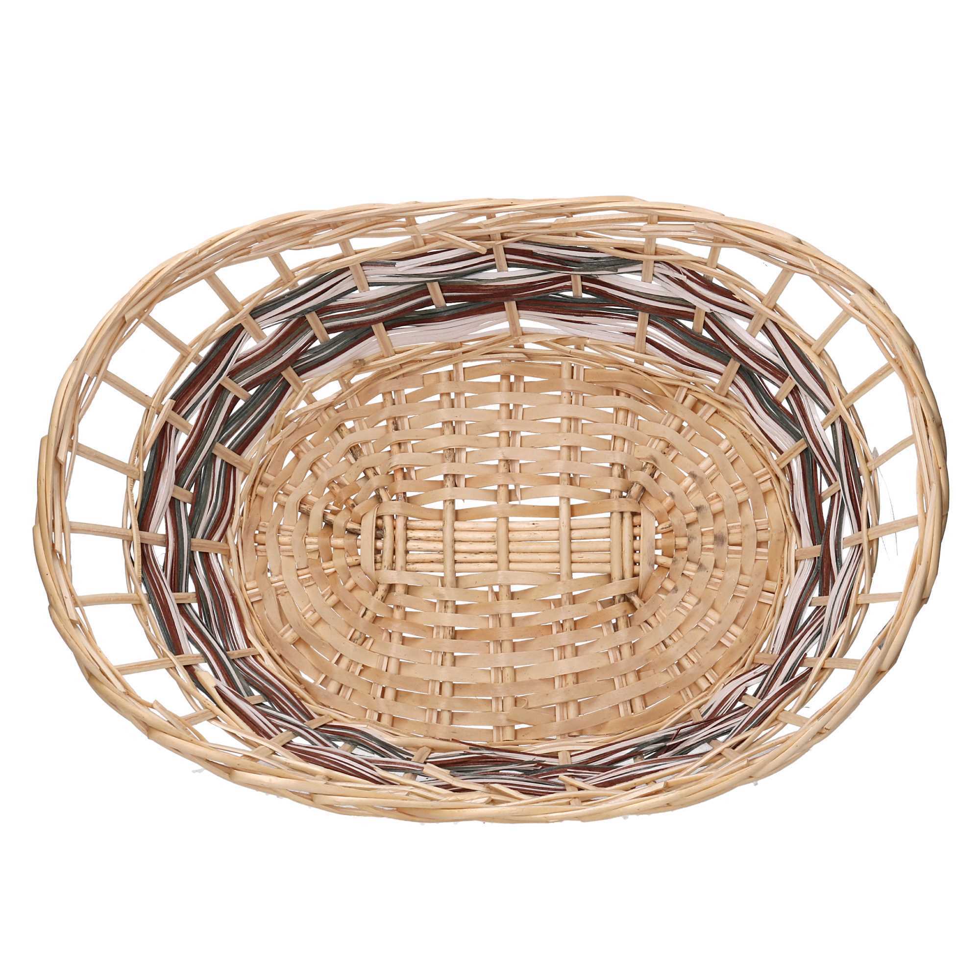 Cesta vimini Kitty cuffa naturale intreccio grigio ovale cm50x36h12/17