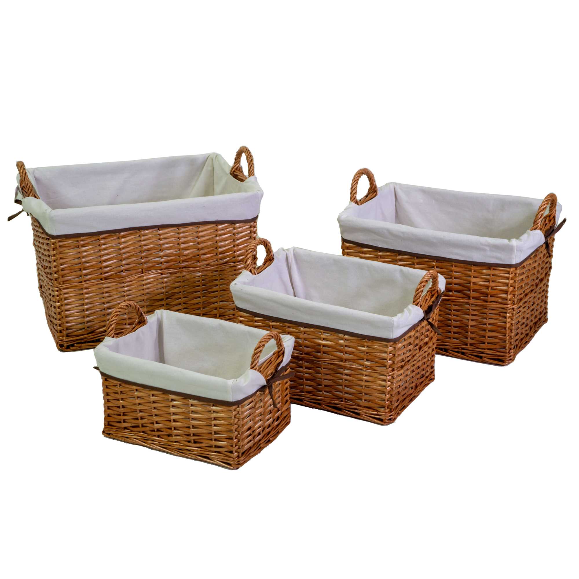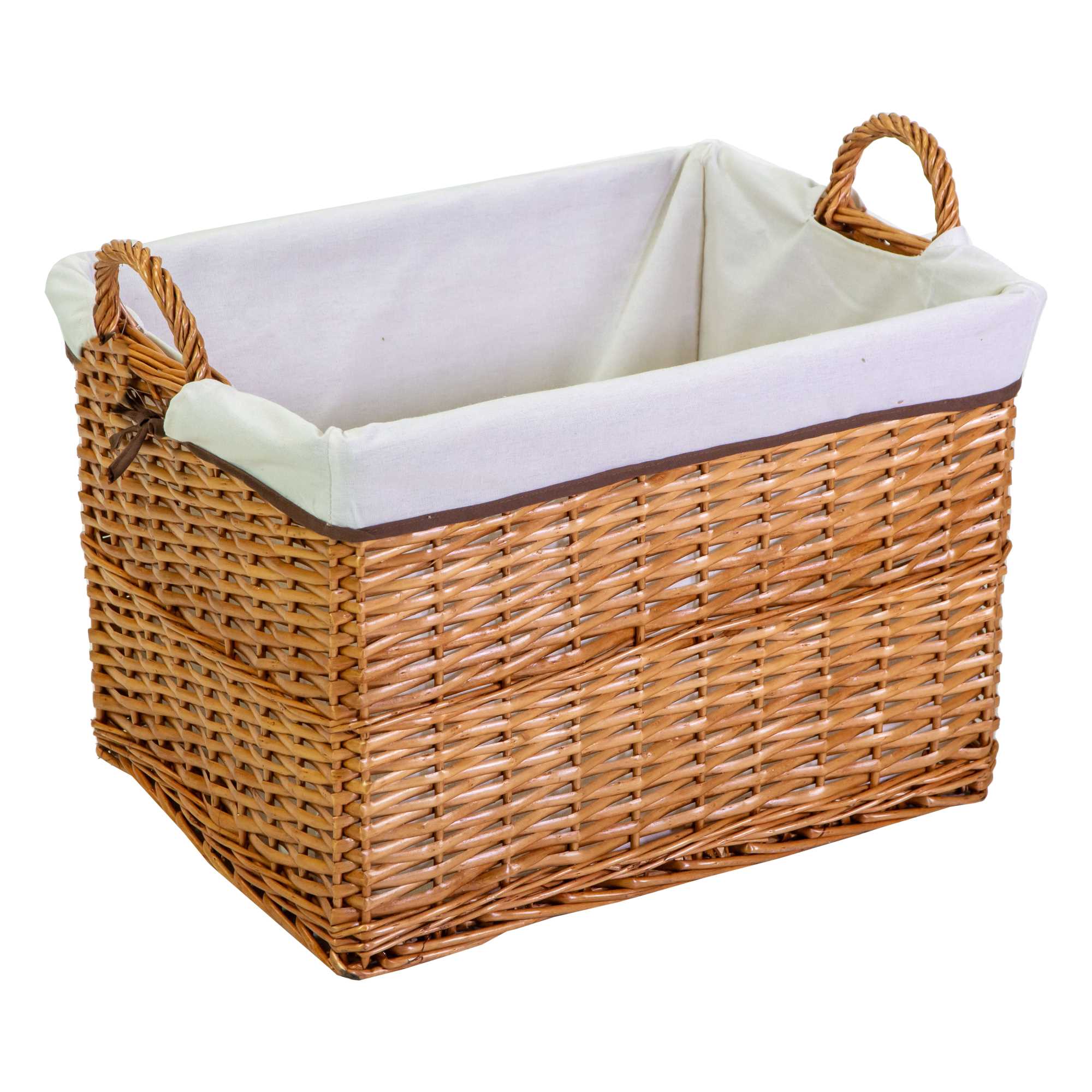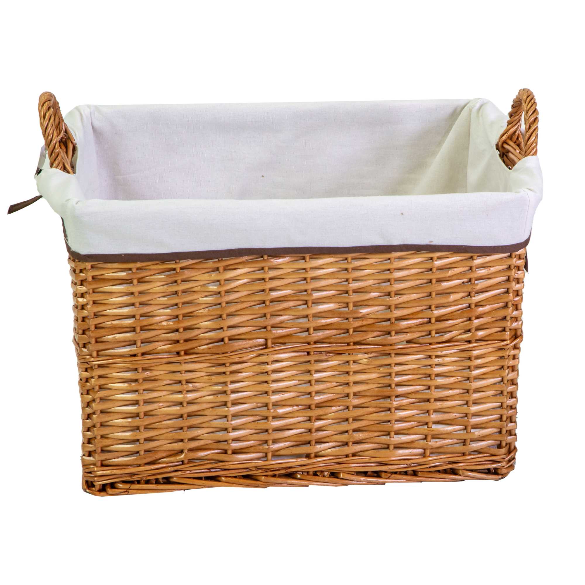 - Cesta vimini naturale 4^ con fodera bianca rettangolare cm56x43h36