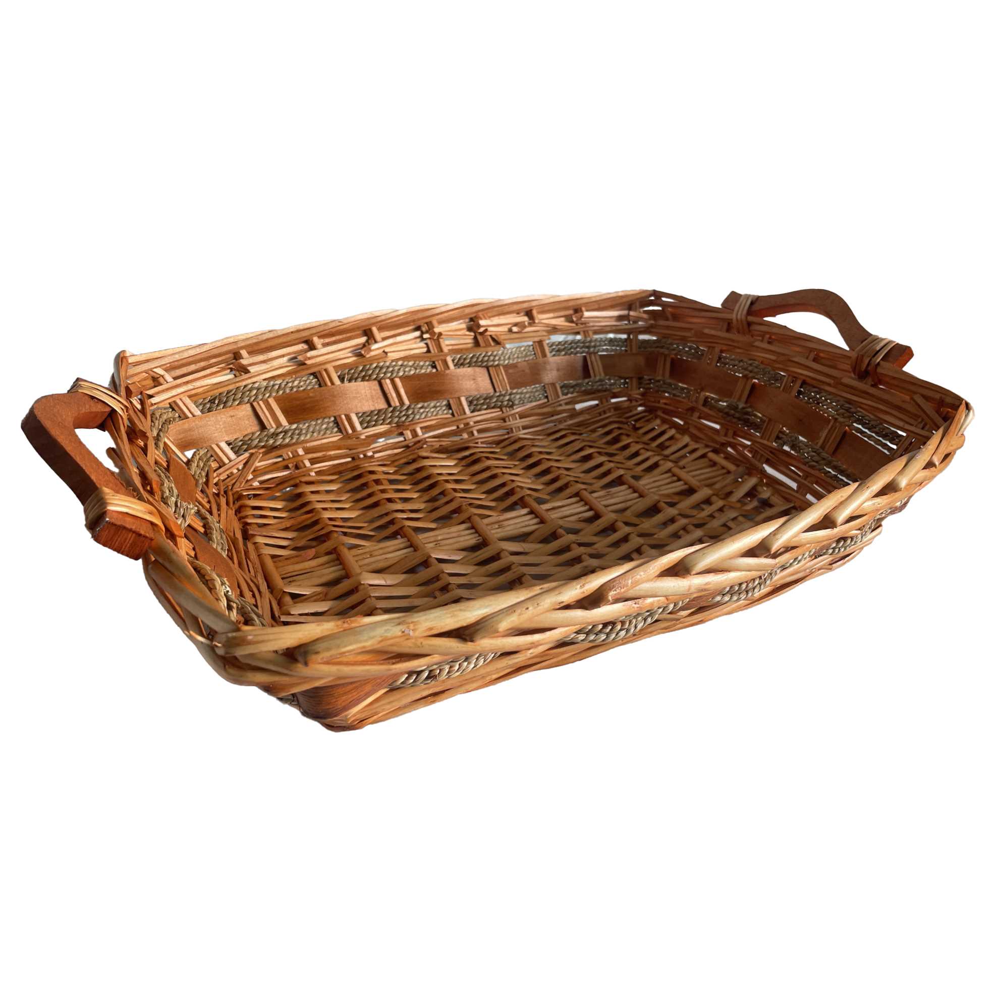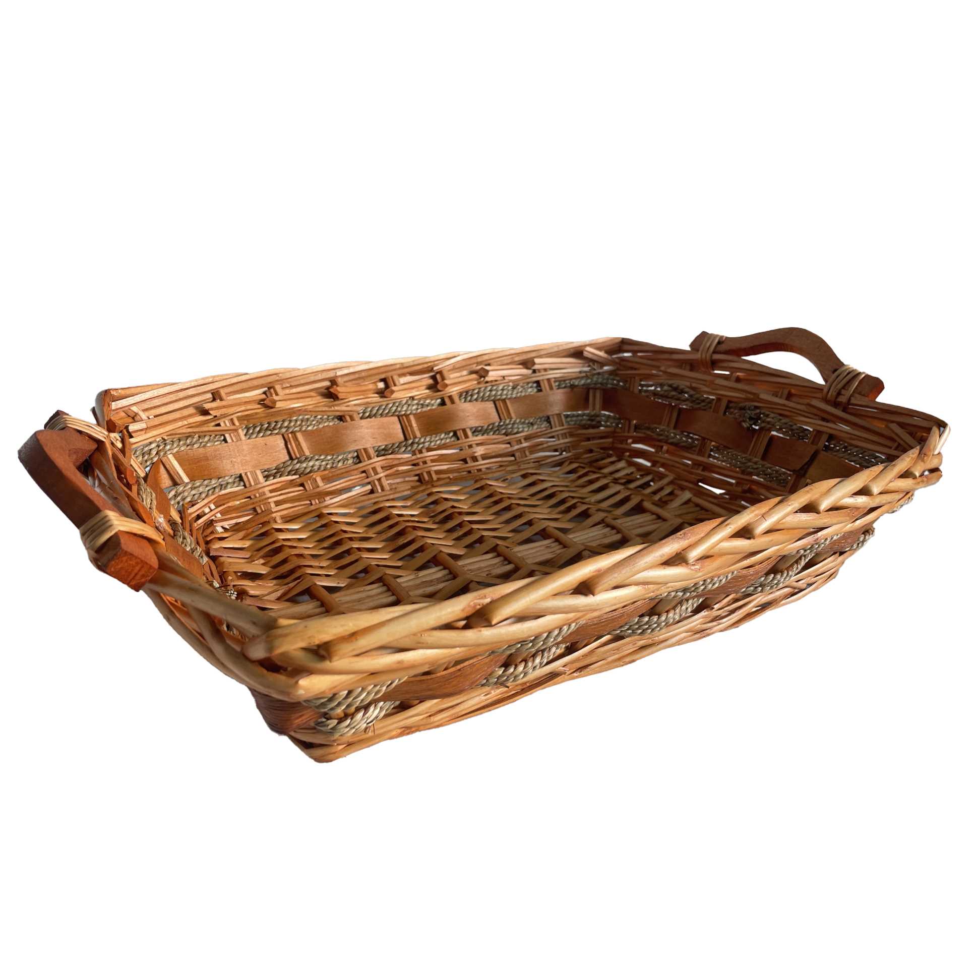 Cesta vimini naturale intreccio corda rettangolare cm49/55x39h14